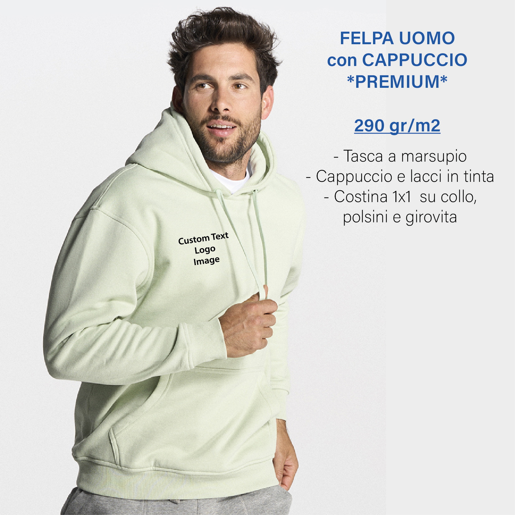 Felpa Uomo con Cappuccio *PREMIUM* 290 gr/m2 Personalizzata