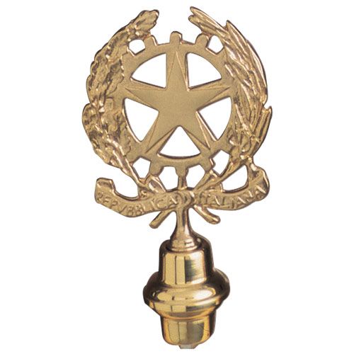- 3 aste per bandiere realizzate in ferro con finitura cromata, diametro mm 22 e altezza cm 200. Realizzate in 2 sezioni con montaggio a vite. Ogni asta è dotata di 2 ganci, un gancio è fisso e posto sulla parte superiore, l'altro scorrevole con possibilità di fissaggio per mezzo di apposita vite idoneo per il tensionamento della bandiera. Sulla parte superiore è presente un foro filettato dove avvitare il puntale.