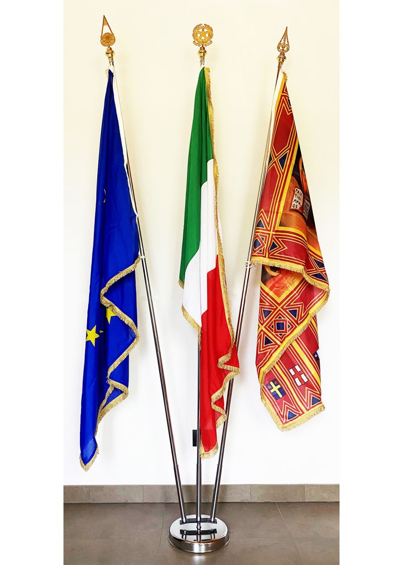 Kit completo per l'esposizione di tre bandiere per uso interno