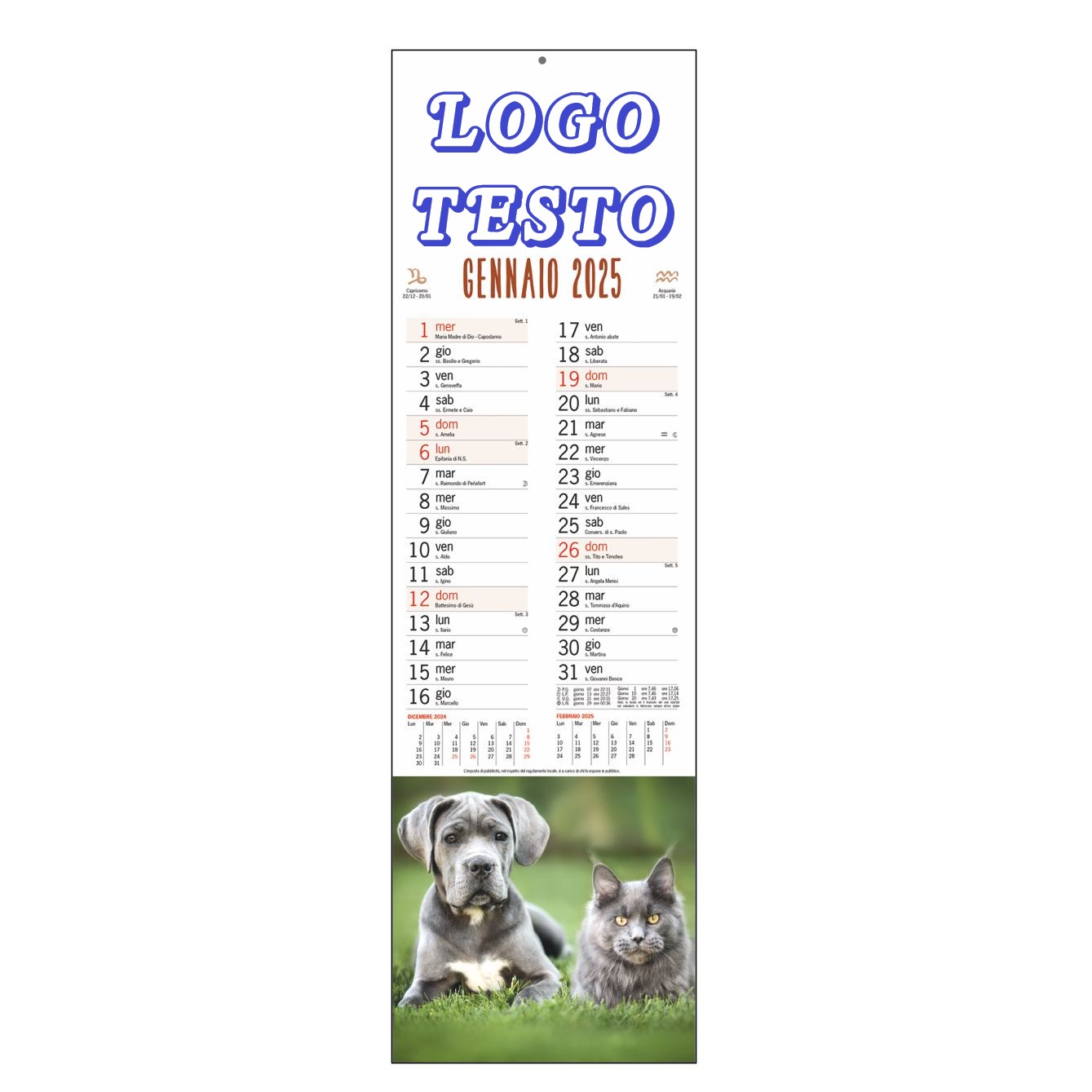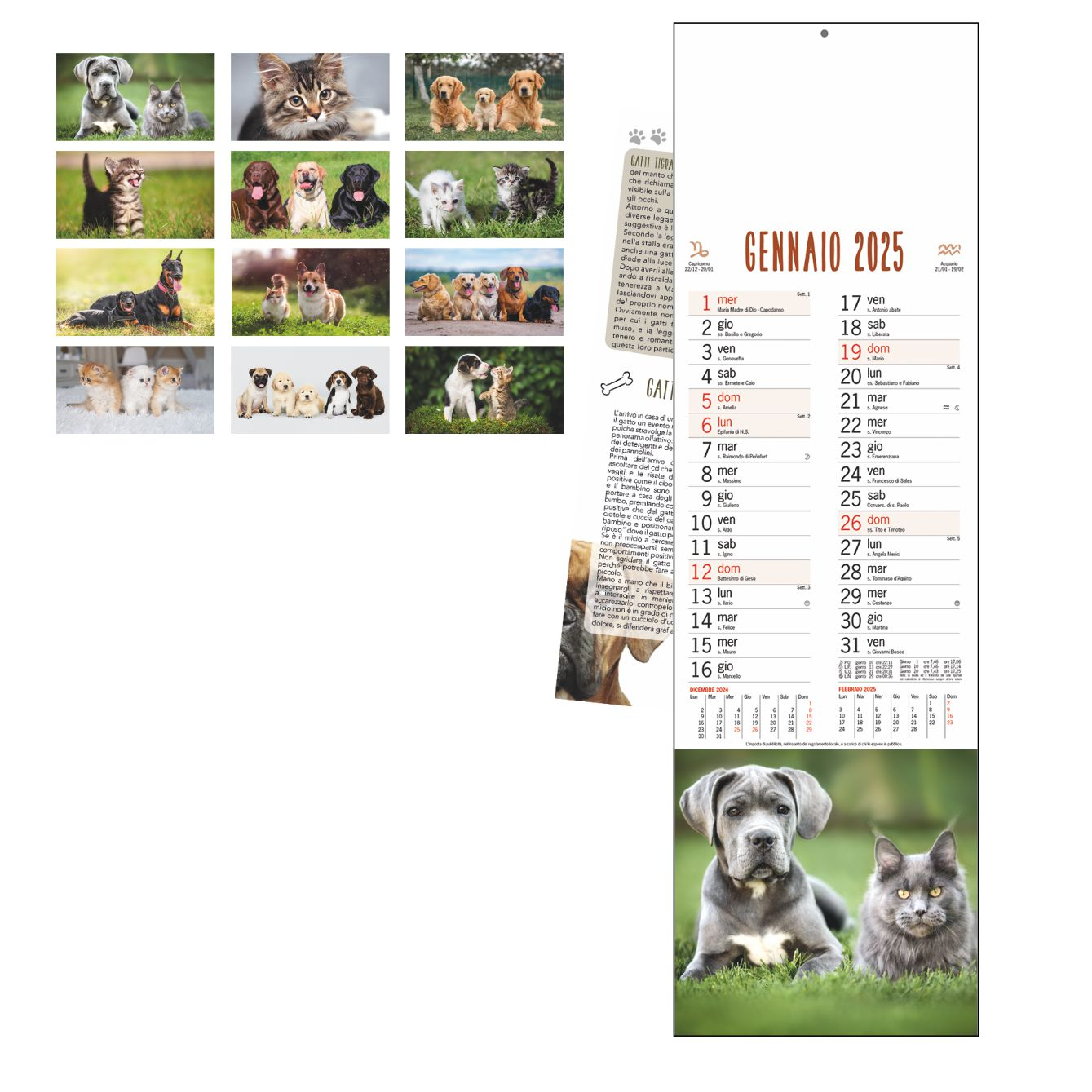 Calendario Da Parete 2025 "Cani e Gatti" Con Testata Cartonata Personalizzata