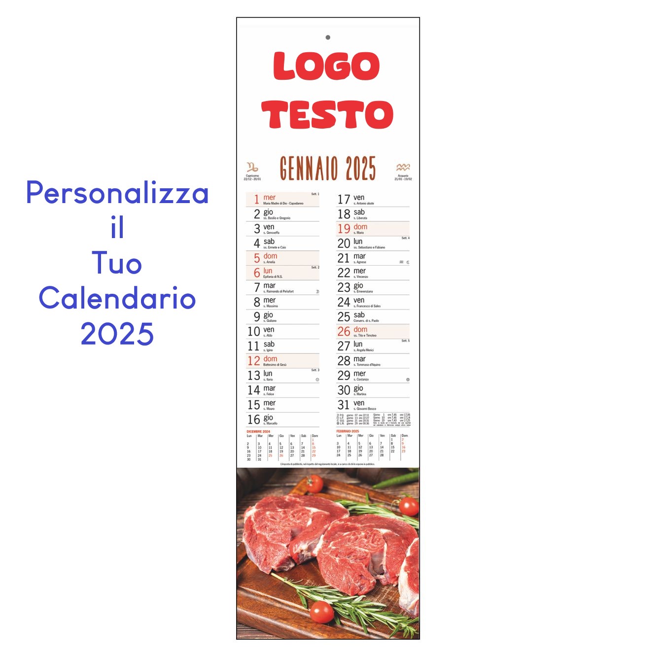 Calendario Da Parete 2025 "Carne" Con Testata Cartonata Personalizzata