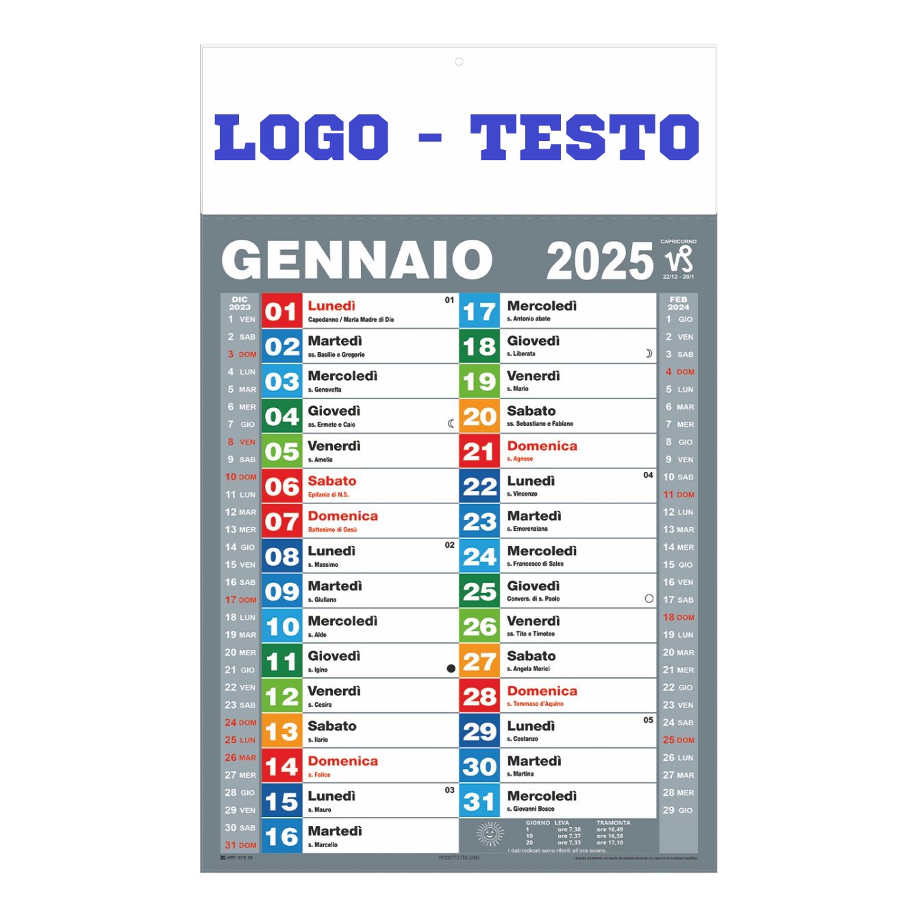 Calendario Olandese Multicolor Da Parete 2025 Con Testata Cartonata Personalizzata