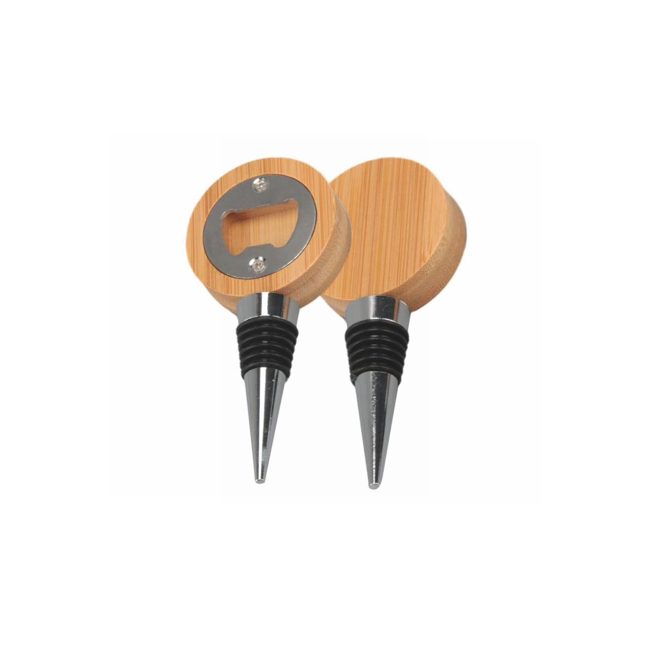 Tappo con funzione di apribottiglie in bamboo e alluminio.