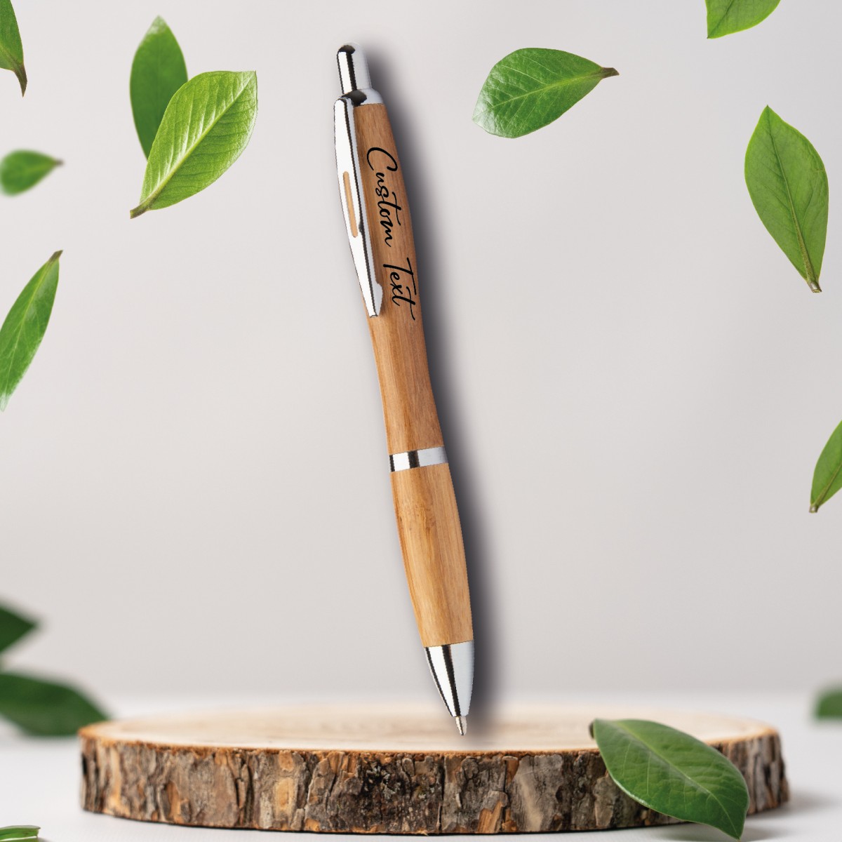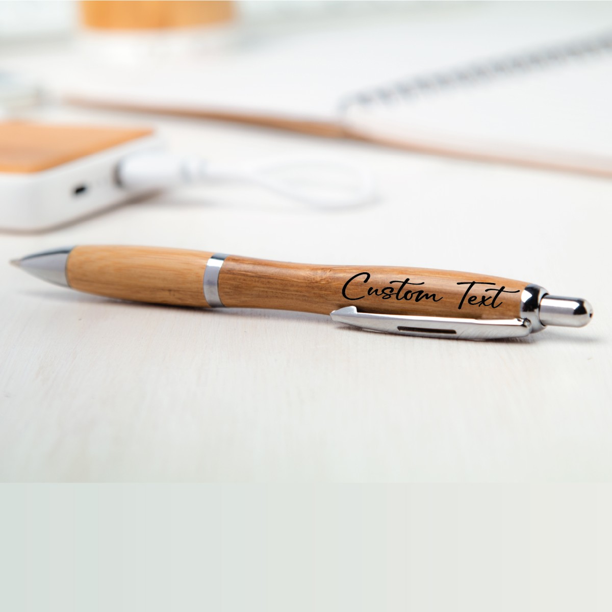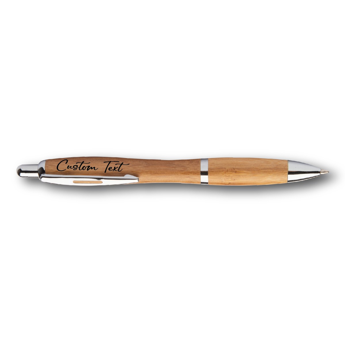 Penna a sfera in bambù con clip in metallo. Con refill blu.