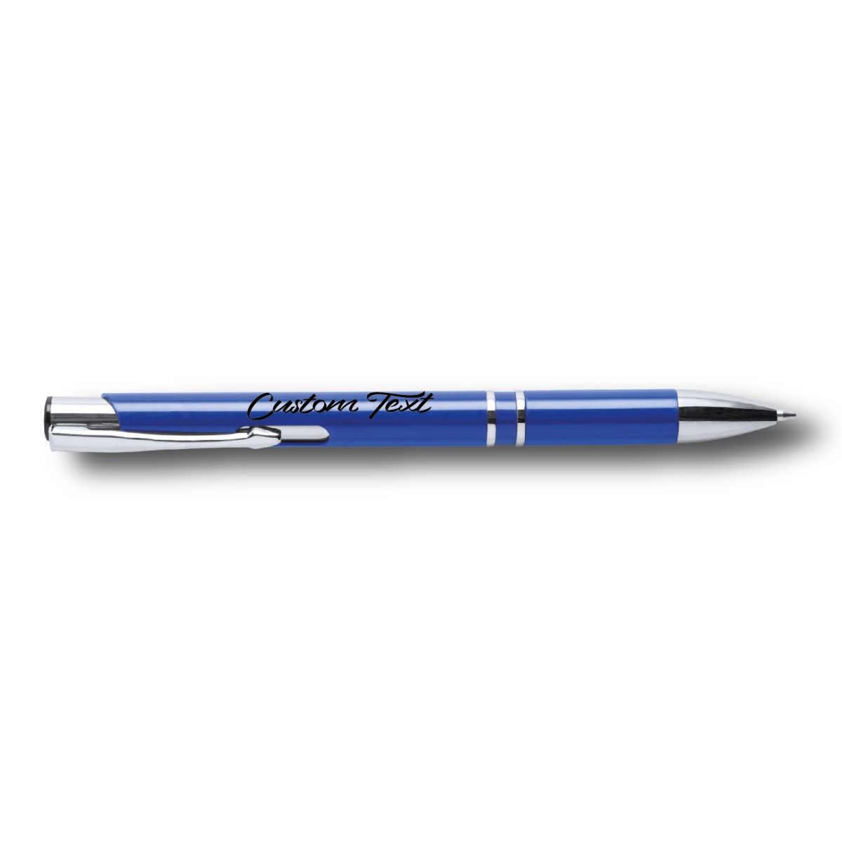 Penna a sfera in plastica con clip e puntale cromato. Fornita con refill blu.