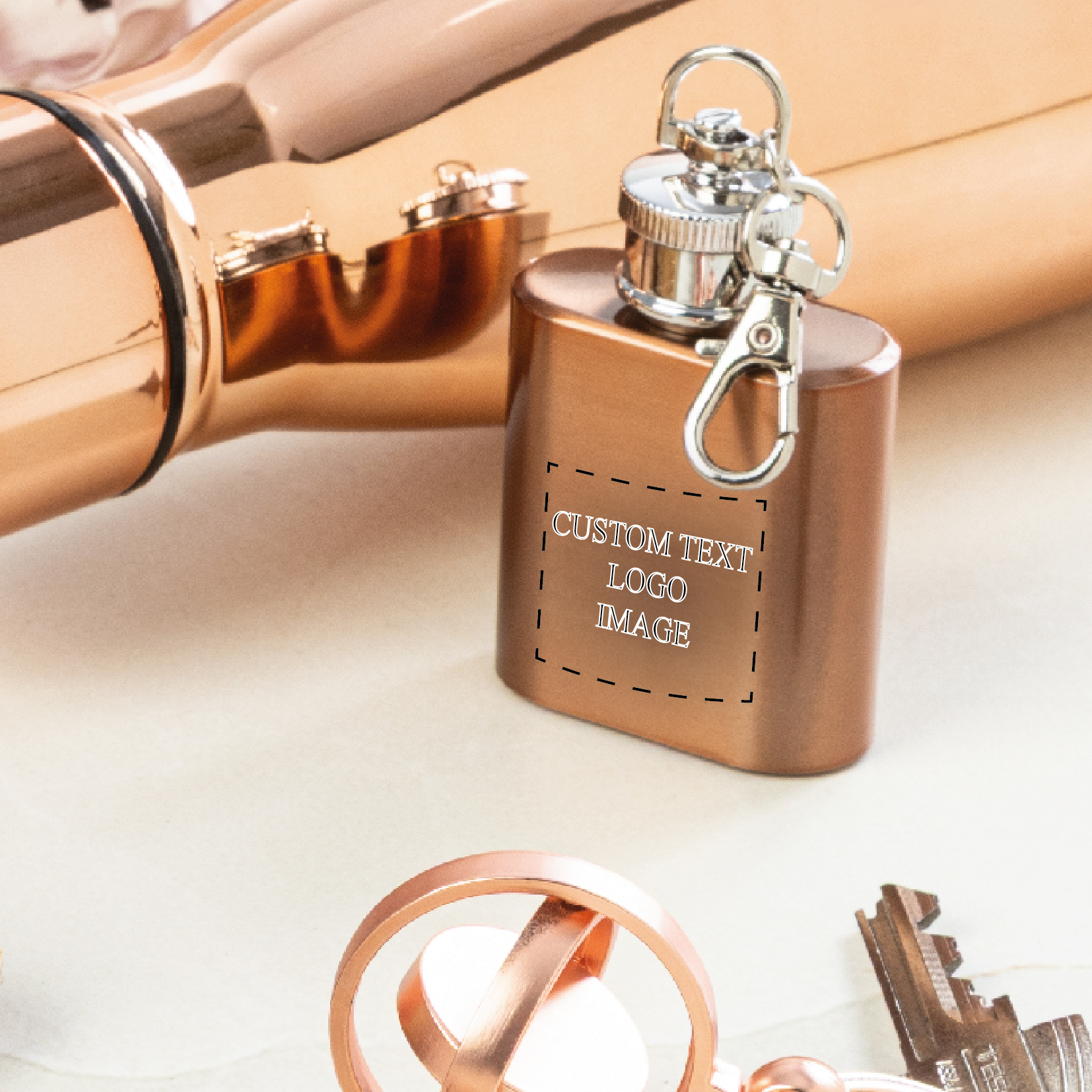 Fiaschetta Portachiavi VASCO 30ml in Acciaio Riciclato con Moschettone Personalizzata