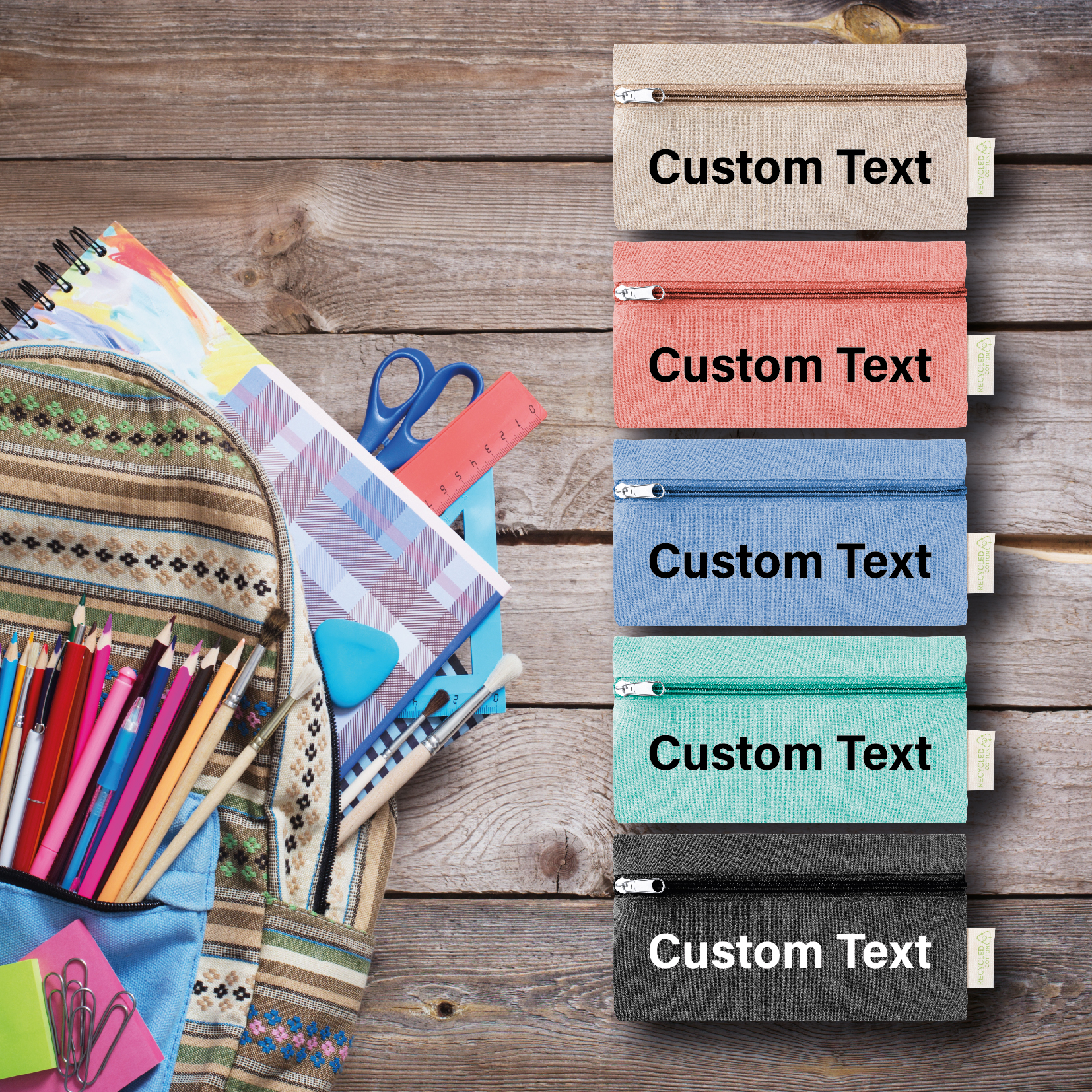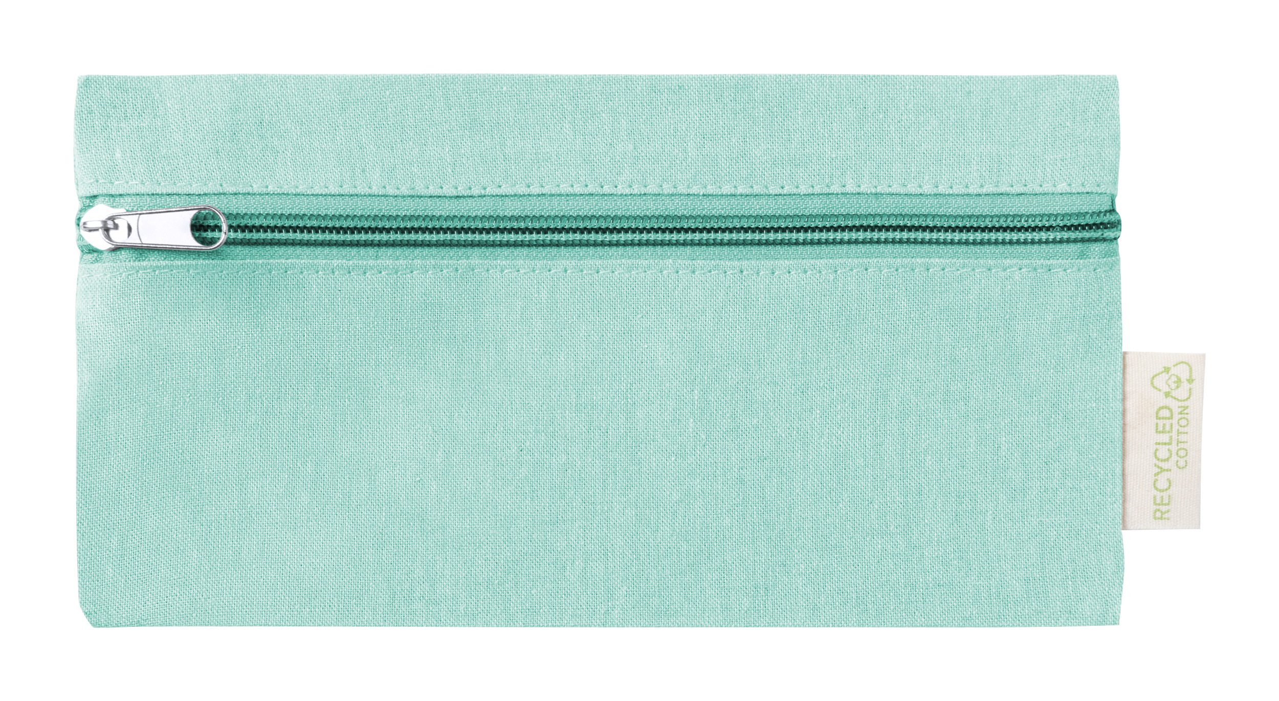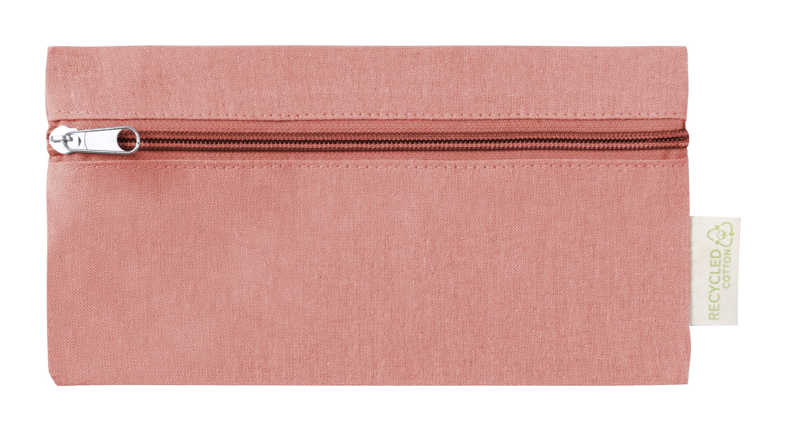 Astuccio per penne in 100% cotone riciclato con cerniera ed etichetta.