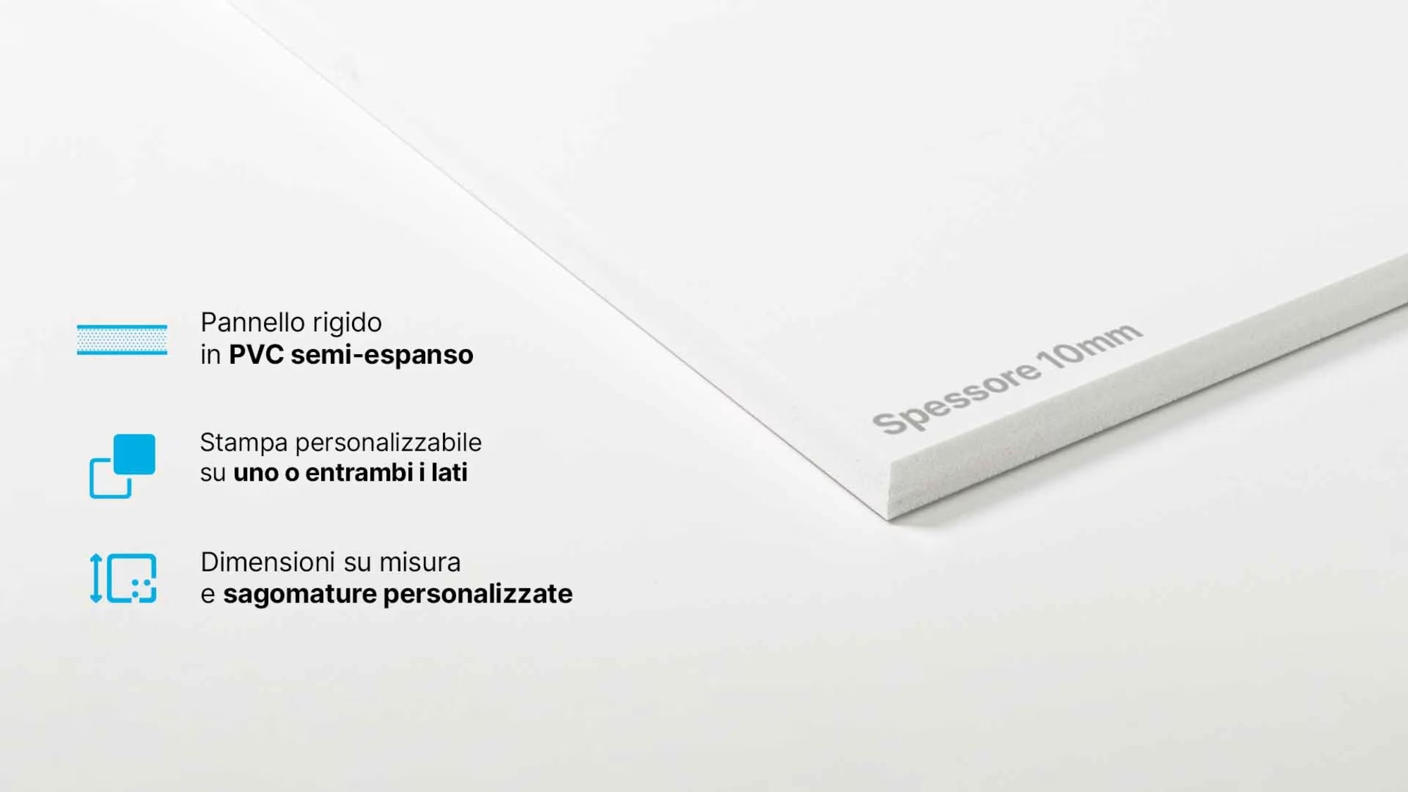 Stampa diretta di pannelli in pvc semiespanso, caratterizzati da una struttura omogenea e flessibile e da una superficie liscia e compatta.