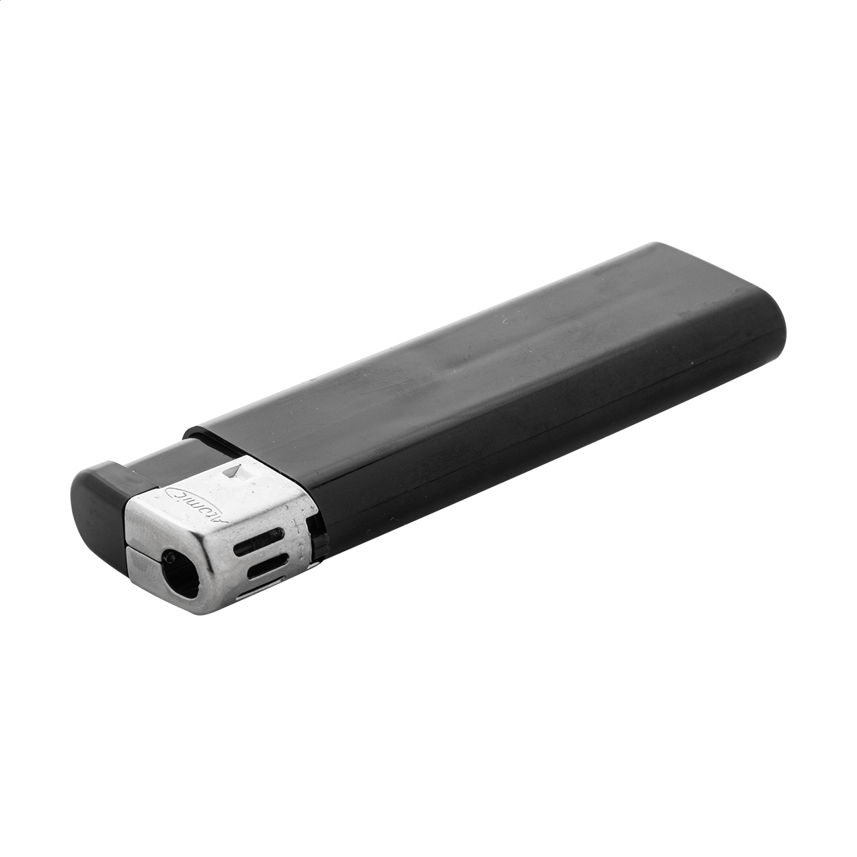 Accendino piezoelettrico ricaricabile in plastica con colorazione metallizzata. Fornito con circa l'80% di carica ed acquistabile solo per imballi completi e multipli di 1000 pezzi!