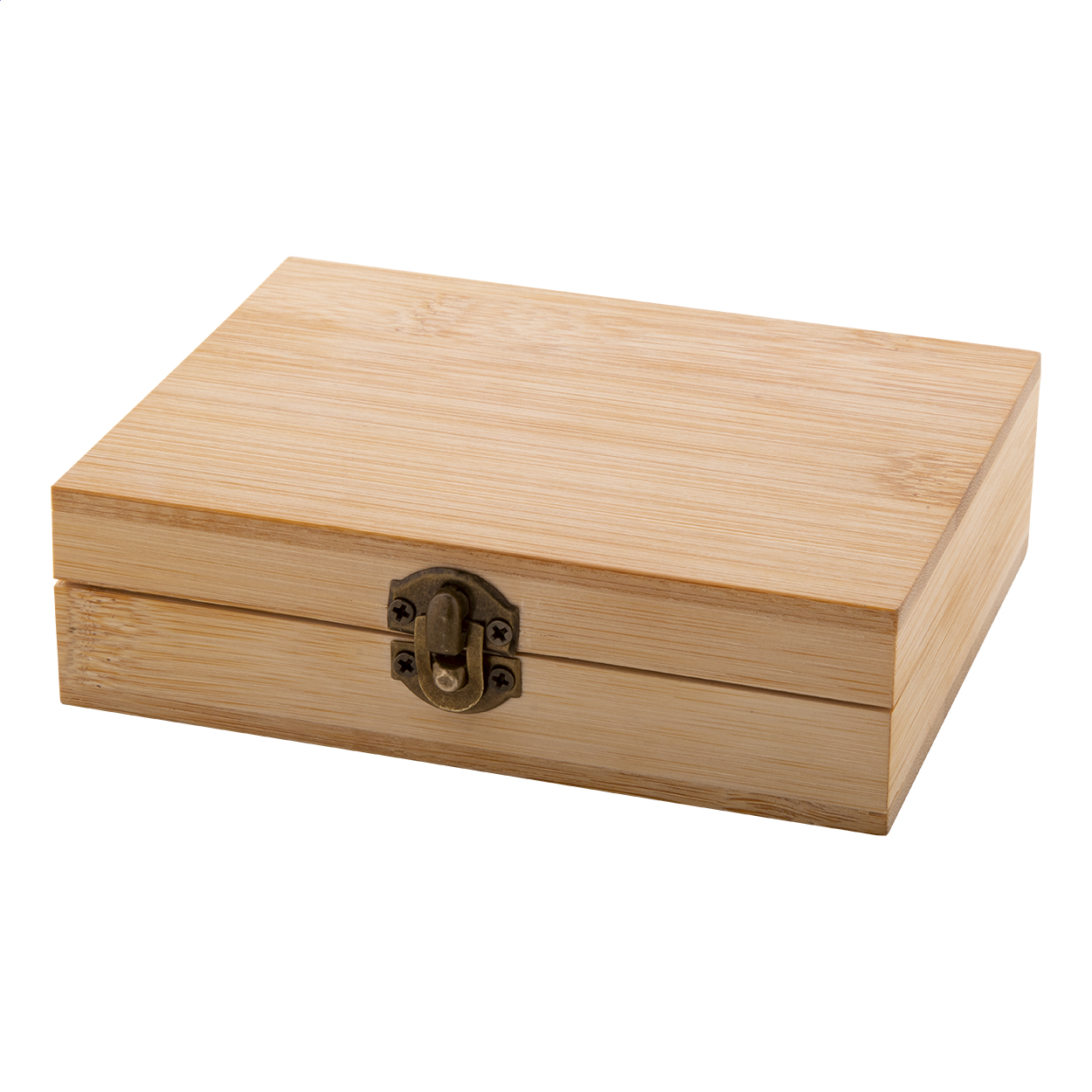Set di cubetti ghiaccio in pietra riutilizzabili in confezione di bambù. Comprende 9 cubetti di ghiaccio in pietra, una borsa in cotone e pinze in acciaio inossidabile.