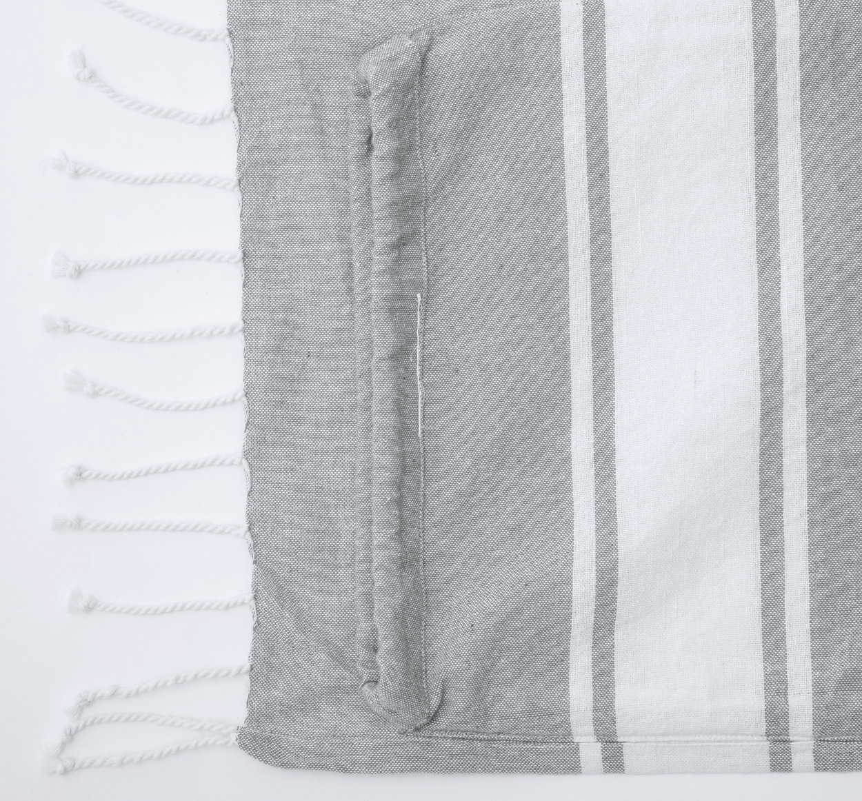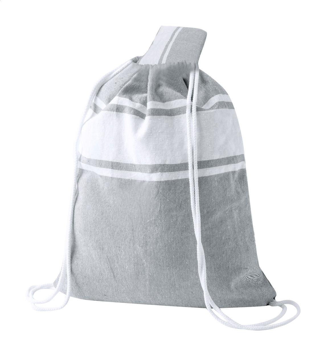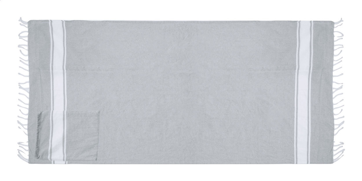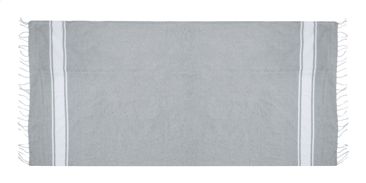 Telo mare pareo bicolore in 100% cotone riciclato 170 g/m² e sacca con chiusura a coulisse coordinata.