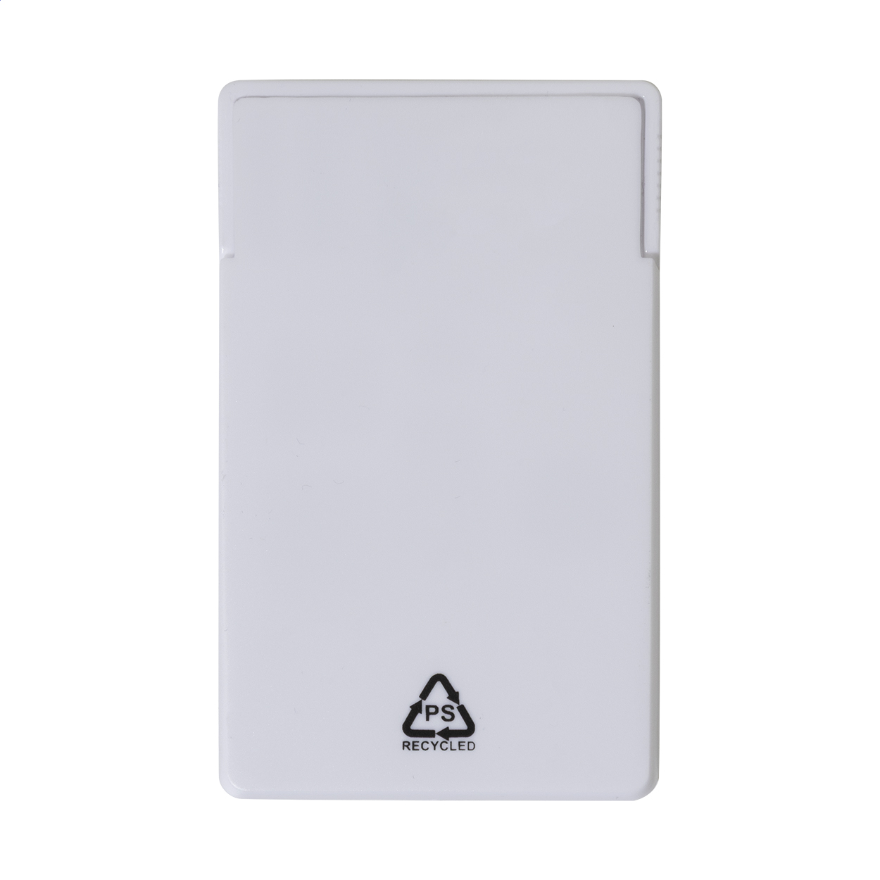 Kit da cucito da viaggio compatto in una custodia in PS riciclato a forma di cartolina. Include 6 fili di poliestere colorati, forbici, 2 spille da balia, 2 aghi, 2 bottoni e un infila ago.