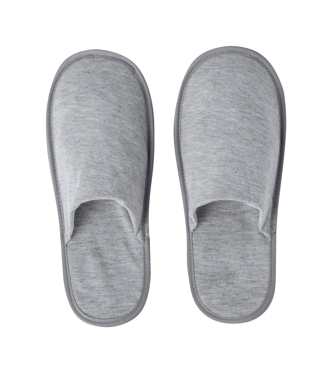 Set da viaggio in poliestere con custodia in poliestere RPET con chiusura a coulisse. Il set comprende cuscino da viaggio gonfiabile, maschera per gli occhi e pantofole in misura unica (36-43).