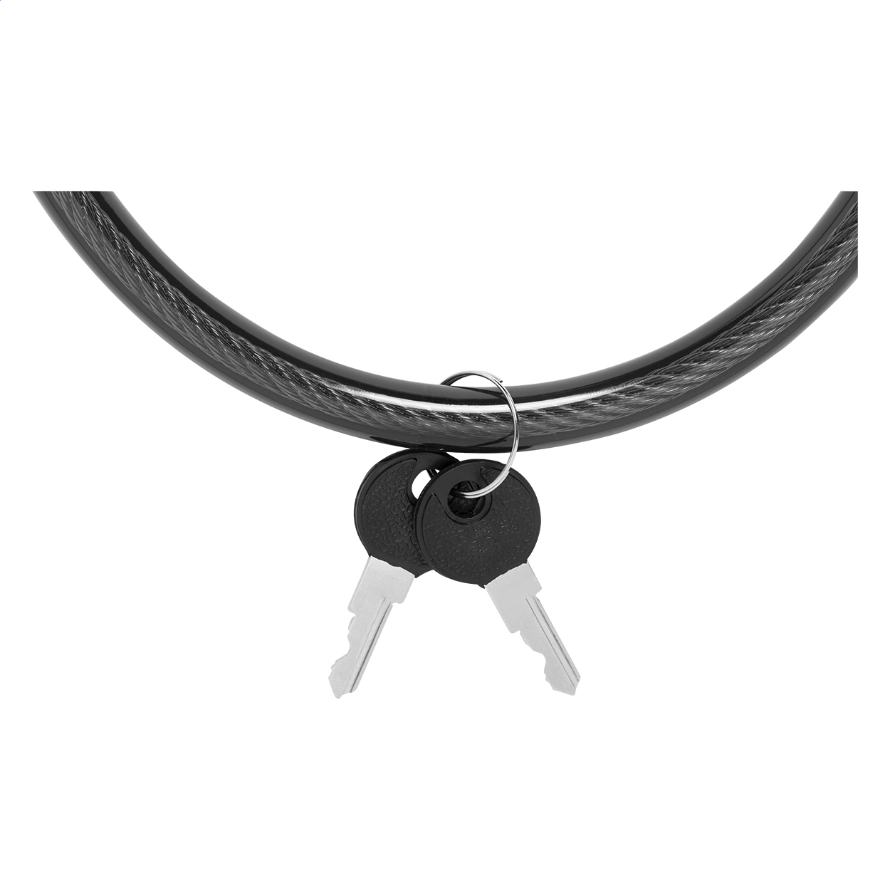 Lucchetto per biciclette con cavo d'acciaio rivestito in PVC e 2 chiavi.