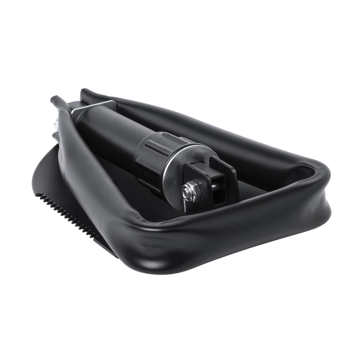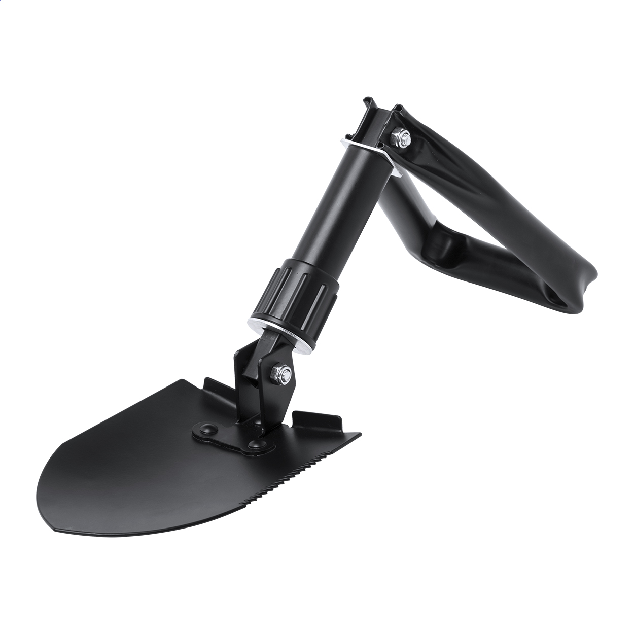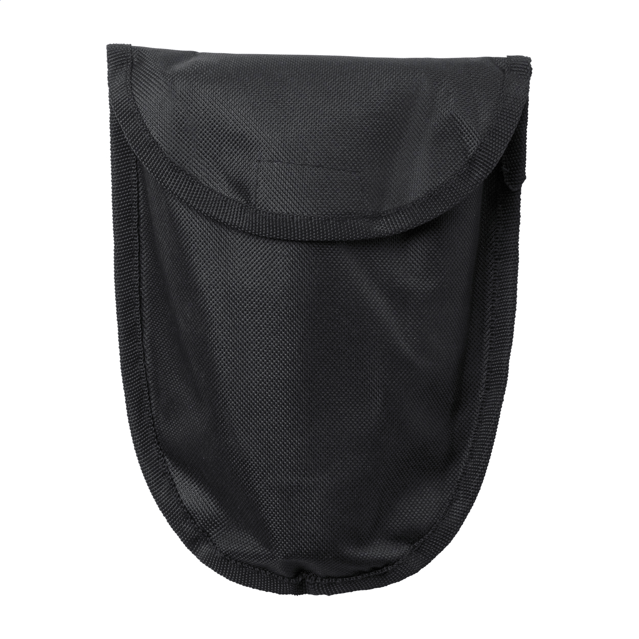 Pala di emergenza pieghevole in acciaio al carbonio completa di custodia per il trasporto.