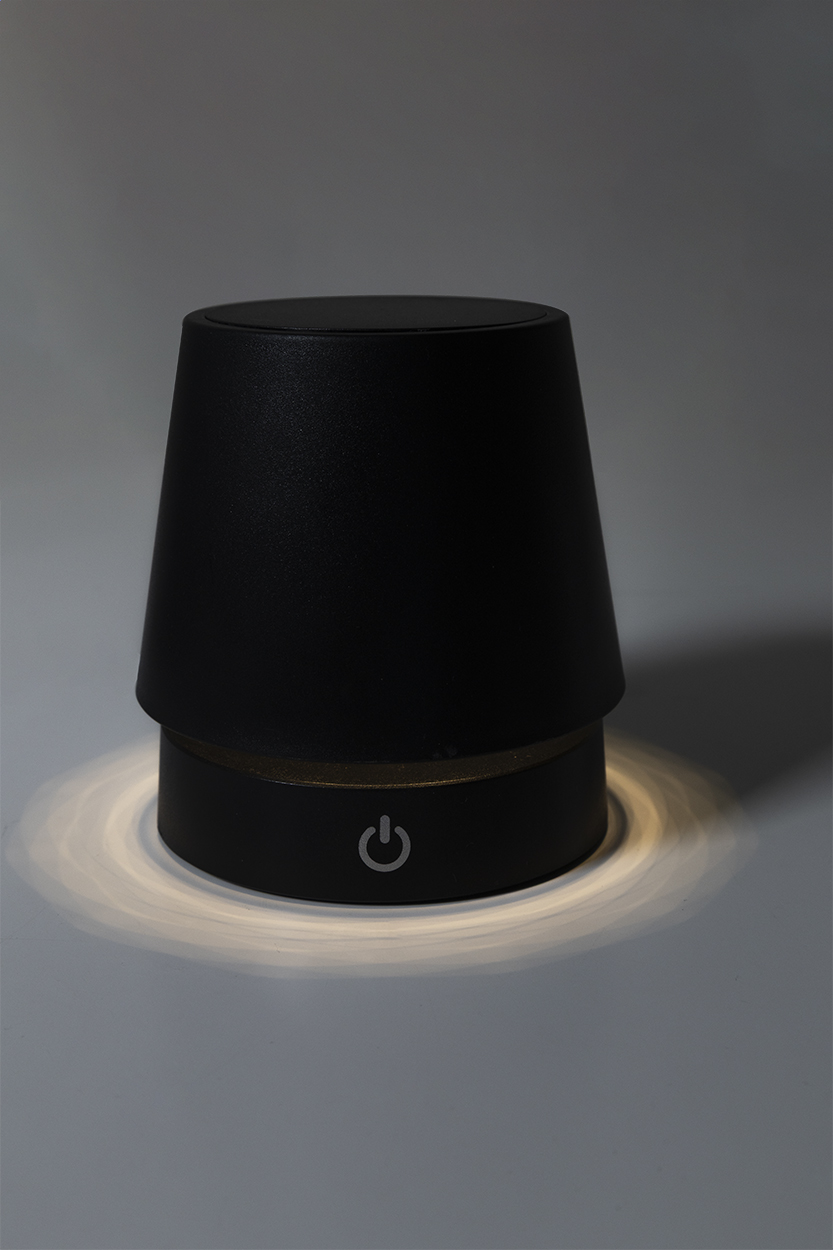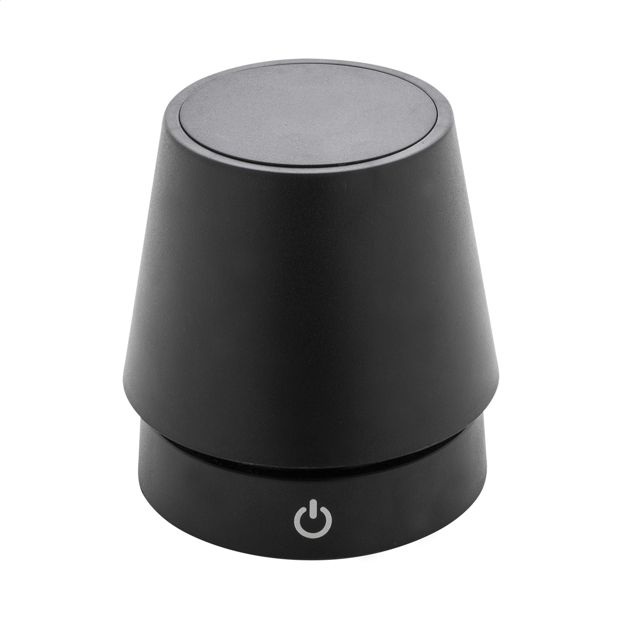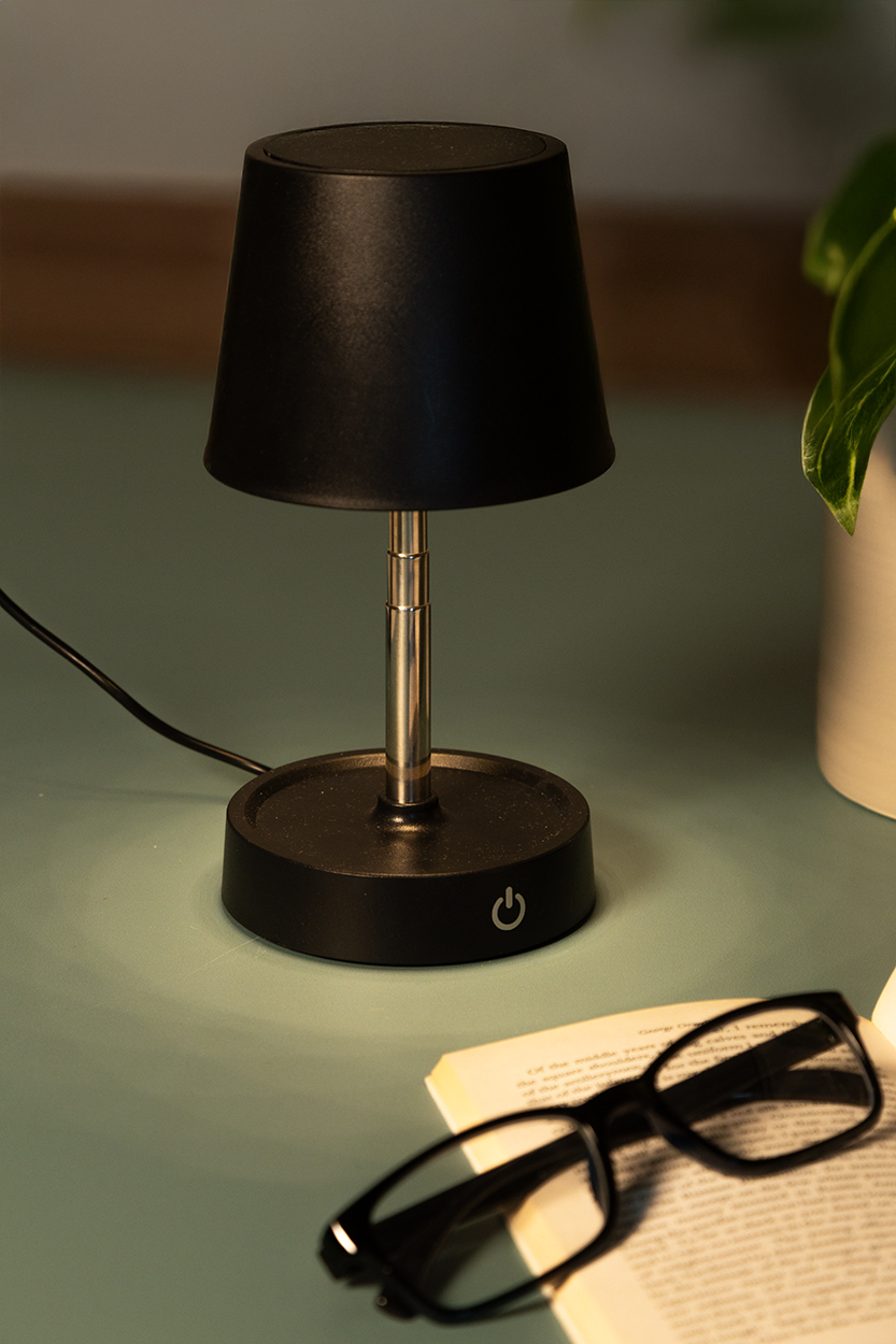 Lampada da tavolo telescopica in ABS riciclato con 12 LED, luminosità regolabile e batteria ricaricabile USB da 1200 mAh. Include cavo di ricarica USB.