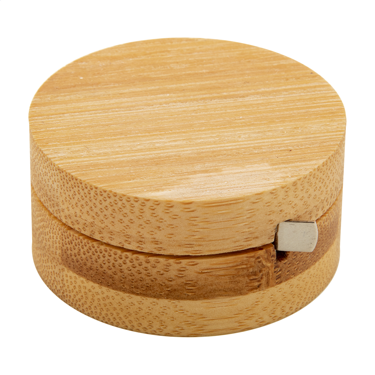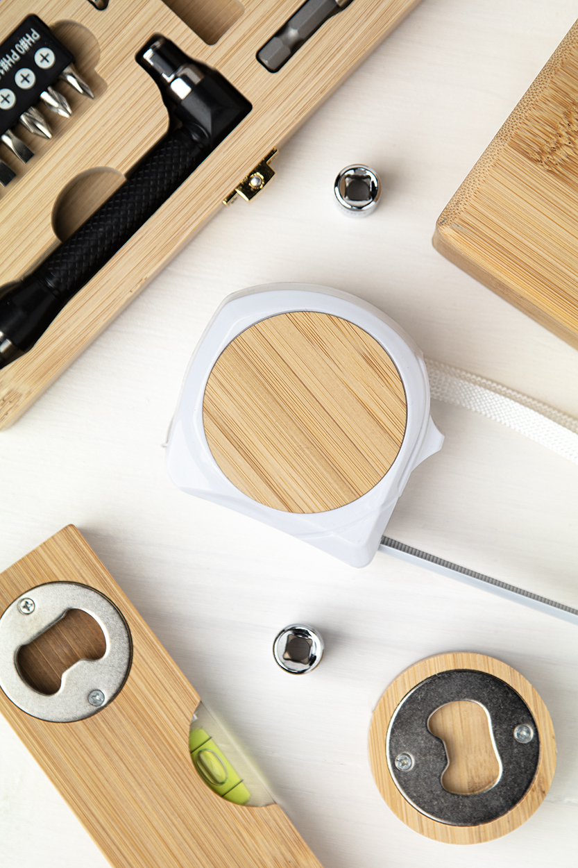 Apribottiglie rotondo in bambù con flessometro da 1 m.
