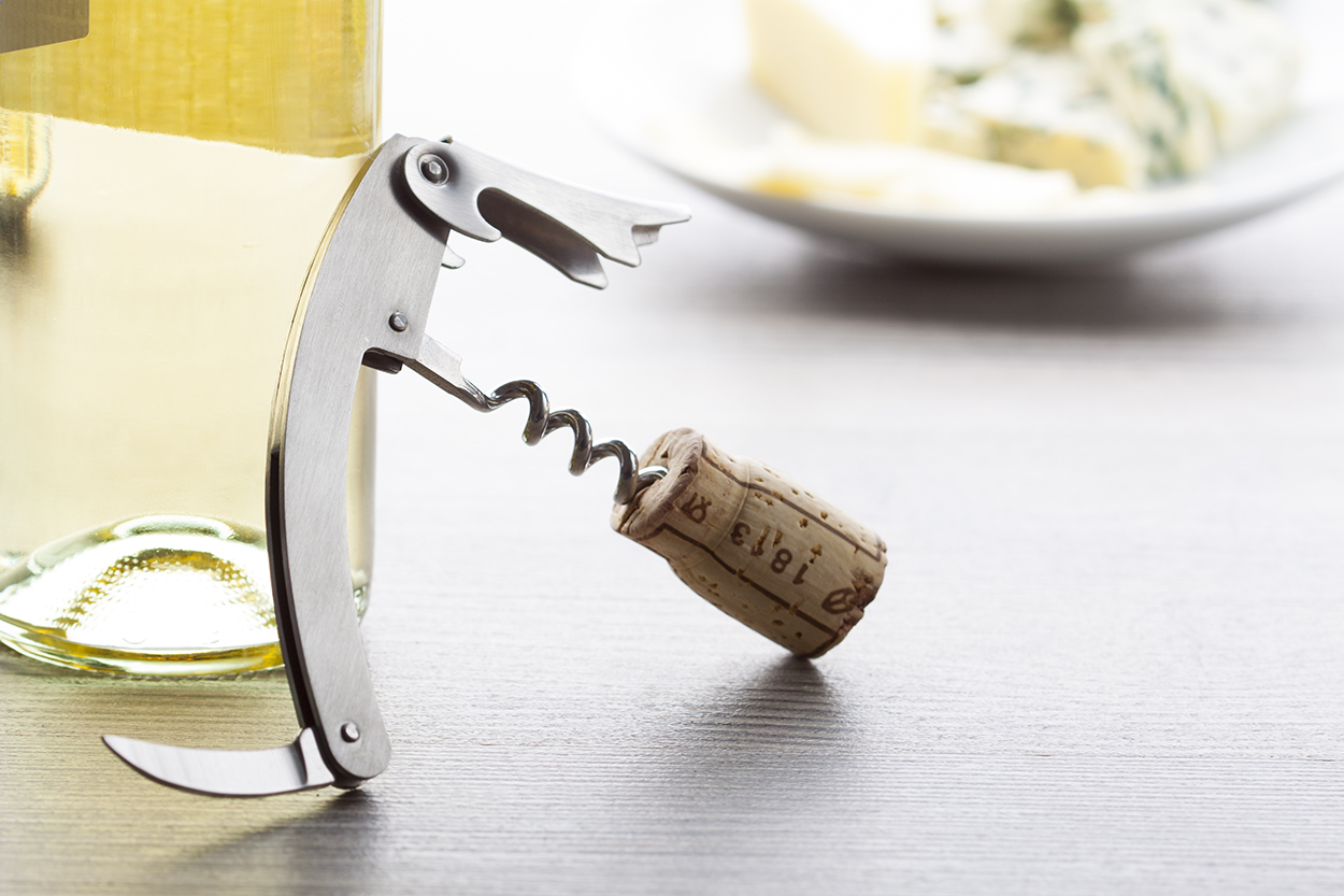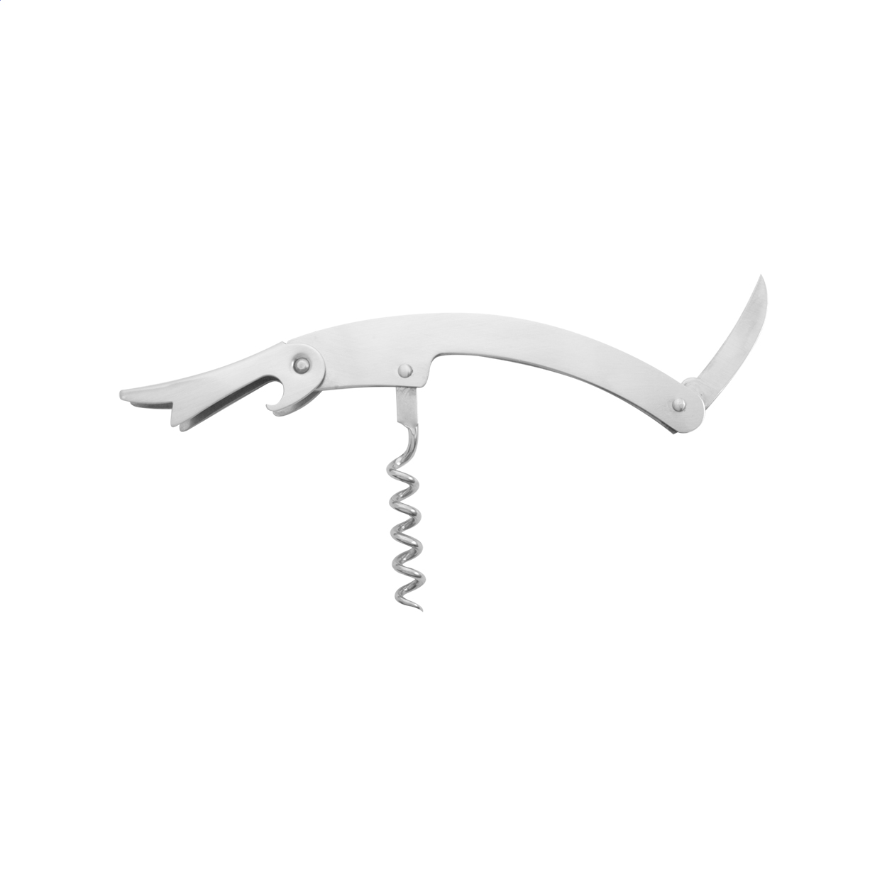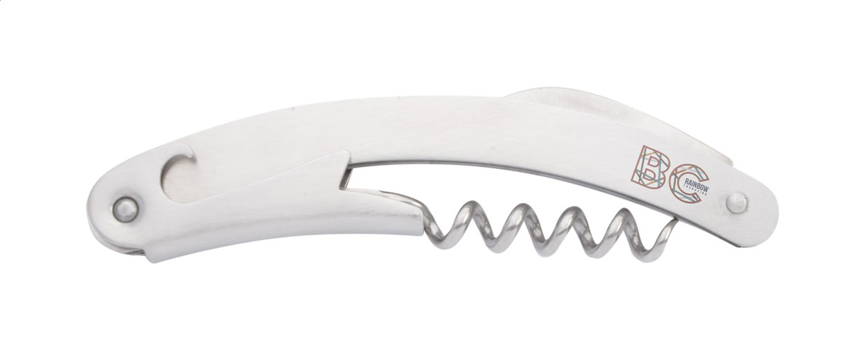 Cavatappi in metallo con apribottiglie e coltellino.