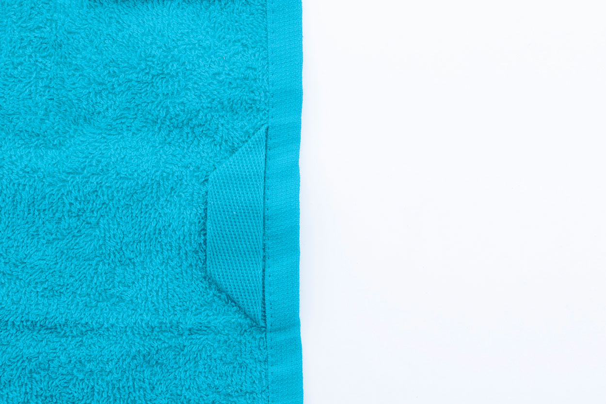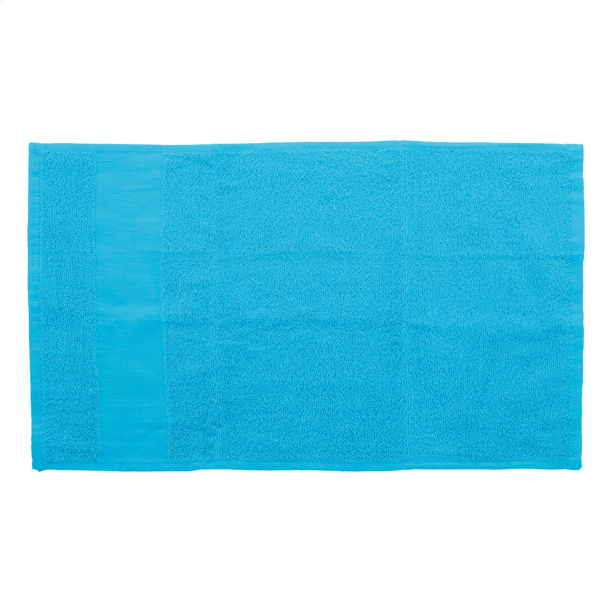 Asciugamano ospiti in 100% spugna di cotone da 360 g/m²,con asola e bordo personalizzabile.
