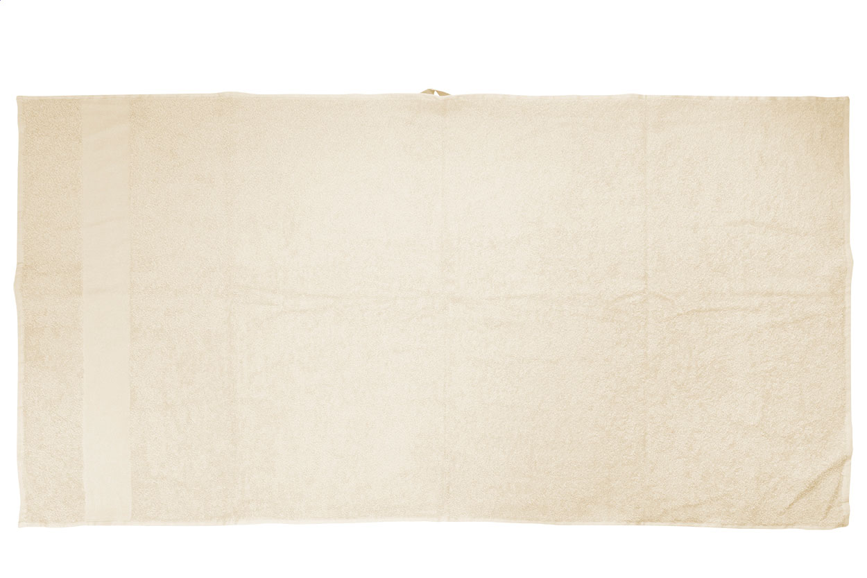 Telo bagno in 100% spugna di cotone da 360 g/m²,con asola e bordo personalizzabile.