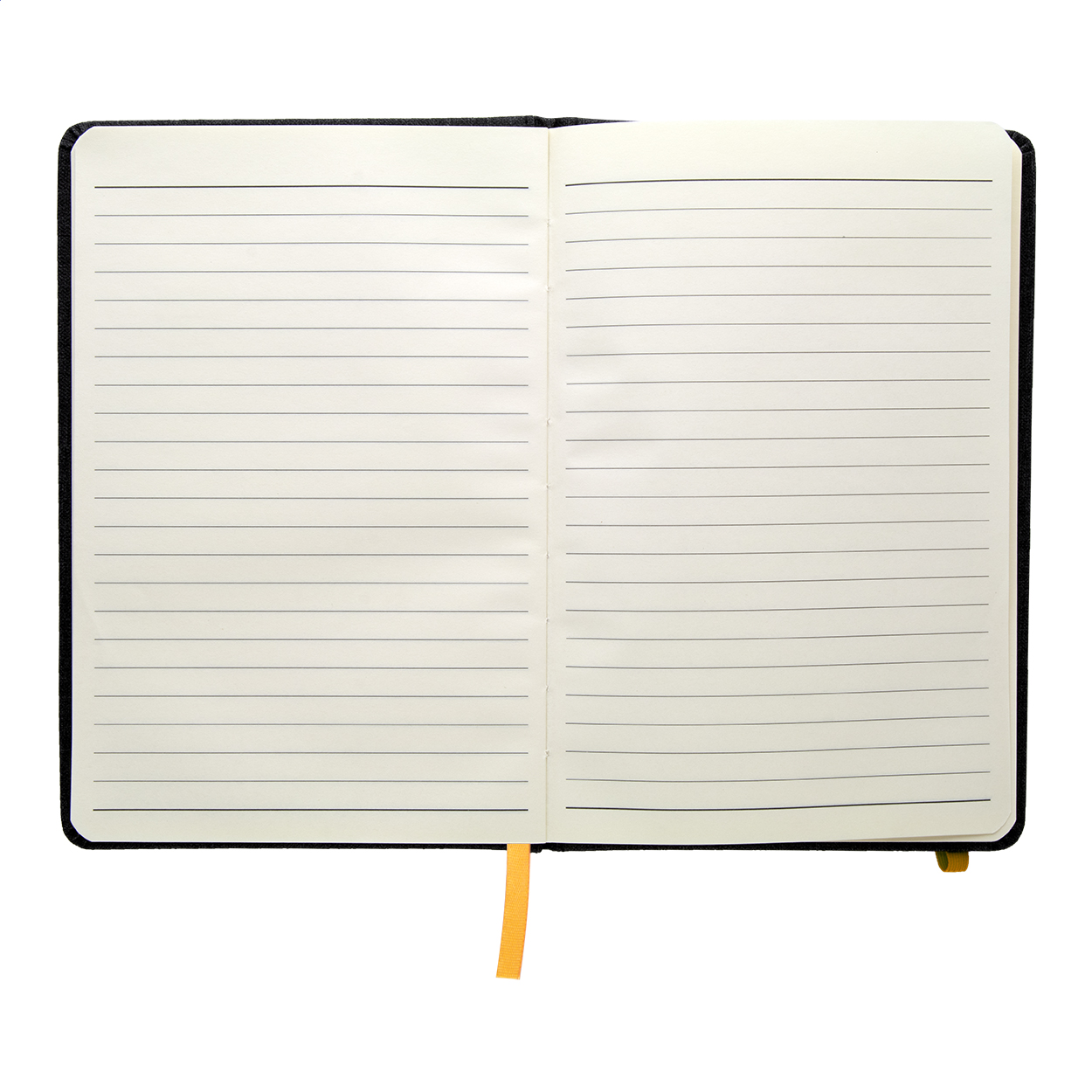 Quaderno con copertina in pelle PU testurizzata, segnalibro, elastico e portapenne in colore coordinato. 96 fogli a righe, formato A5.