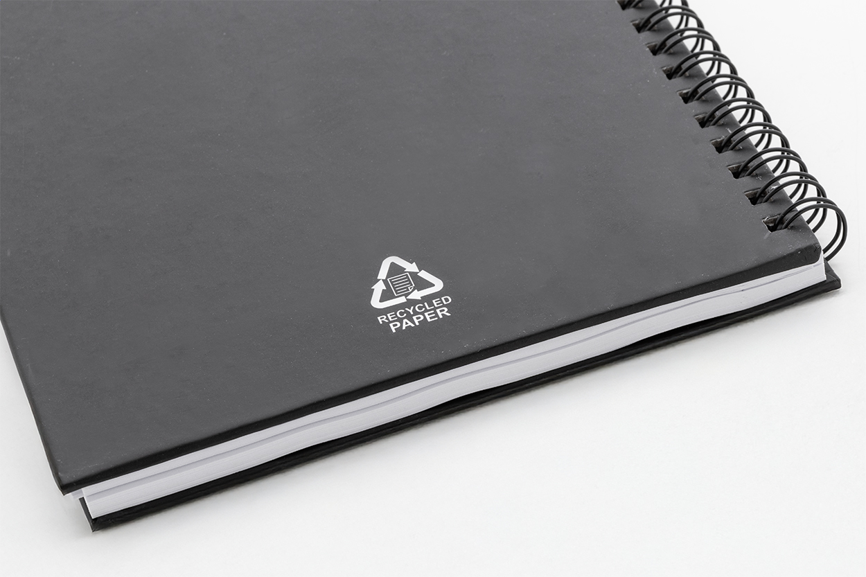 Quaderno a spirale formato A5 con copertina e 80 fogli a righe in carta riciclata.