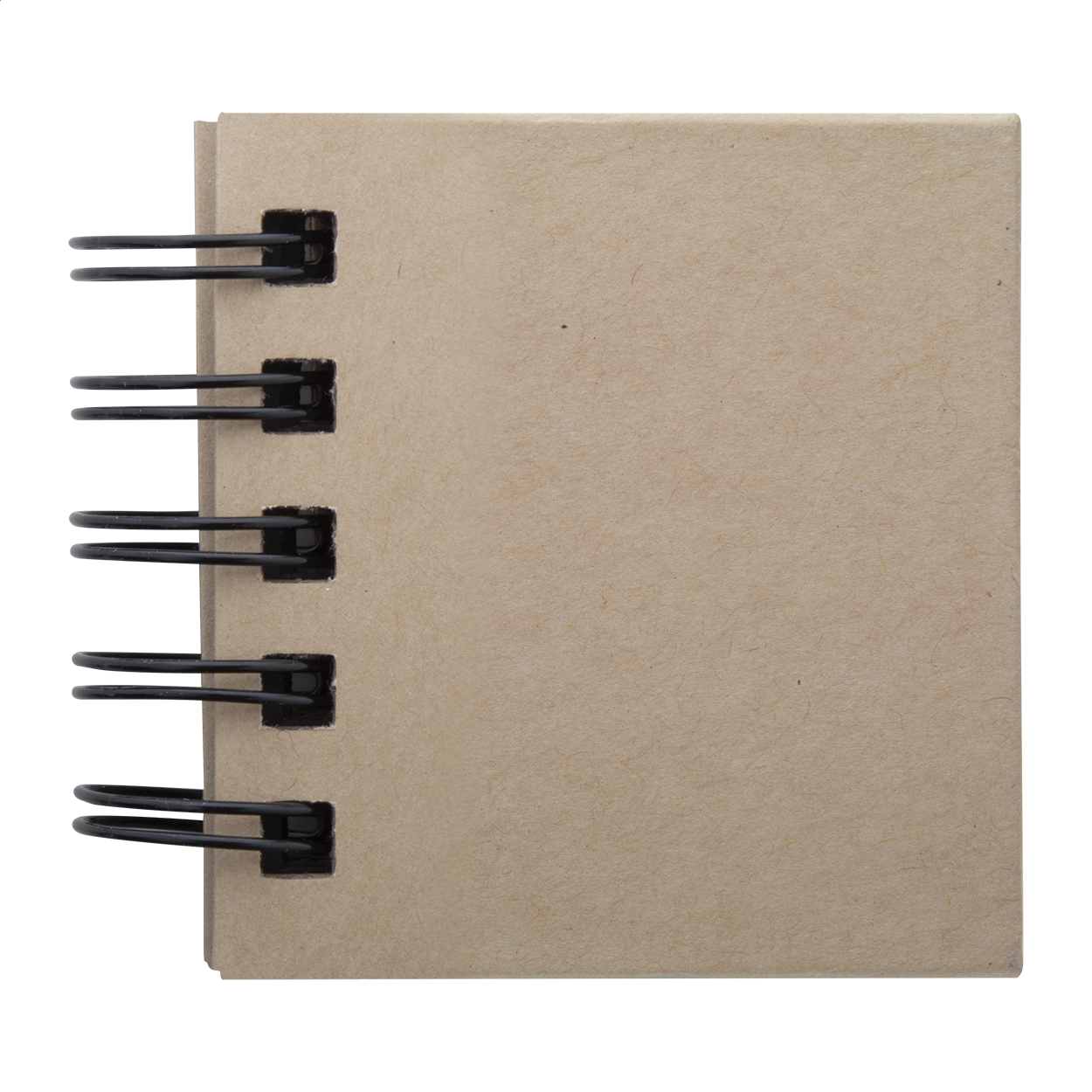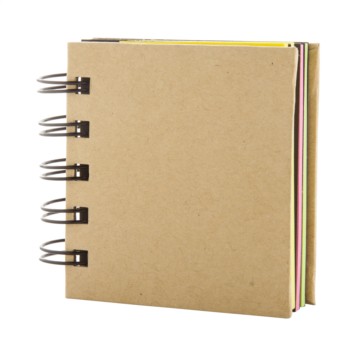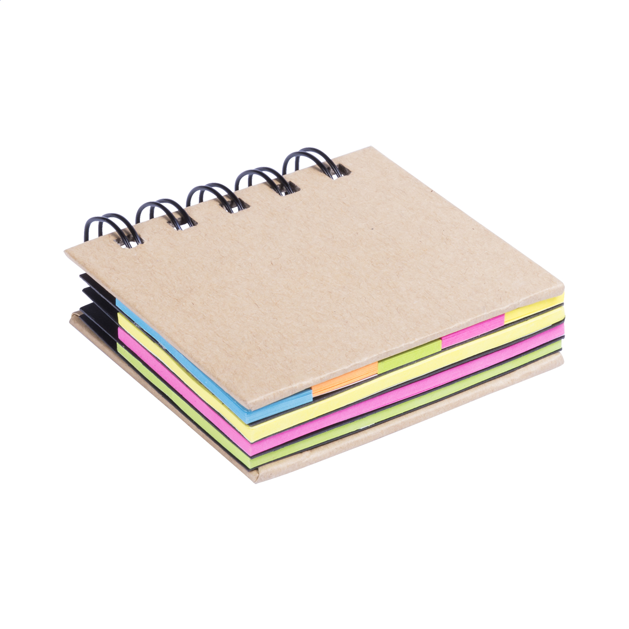 Blocco a spirale in carta riciclata con fogli adesivi di varie dimensioni (5×25 e 3×25 piccoli grandi).