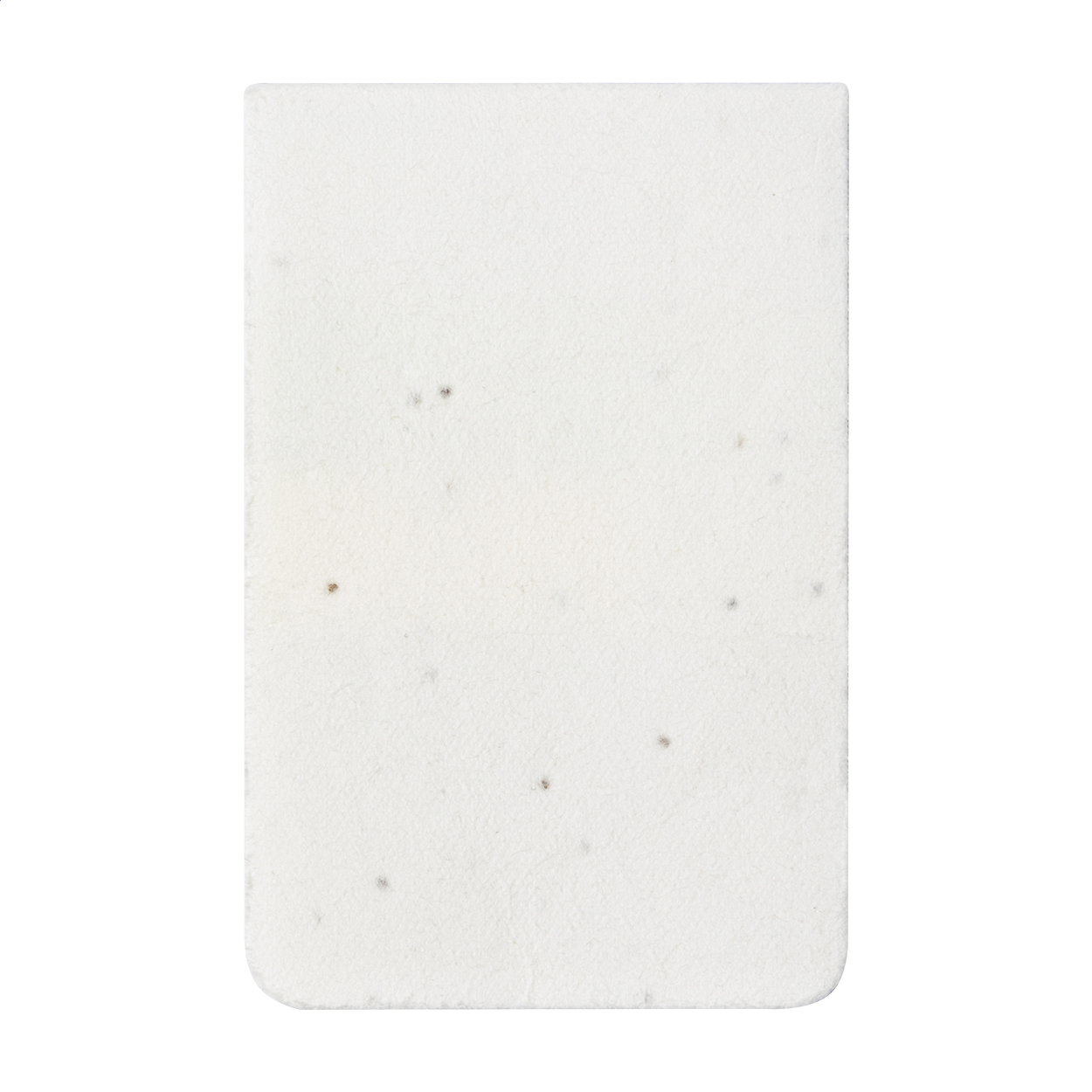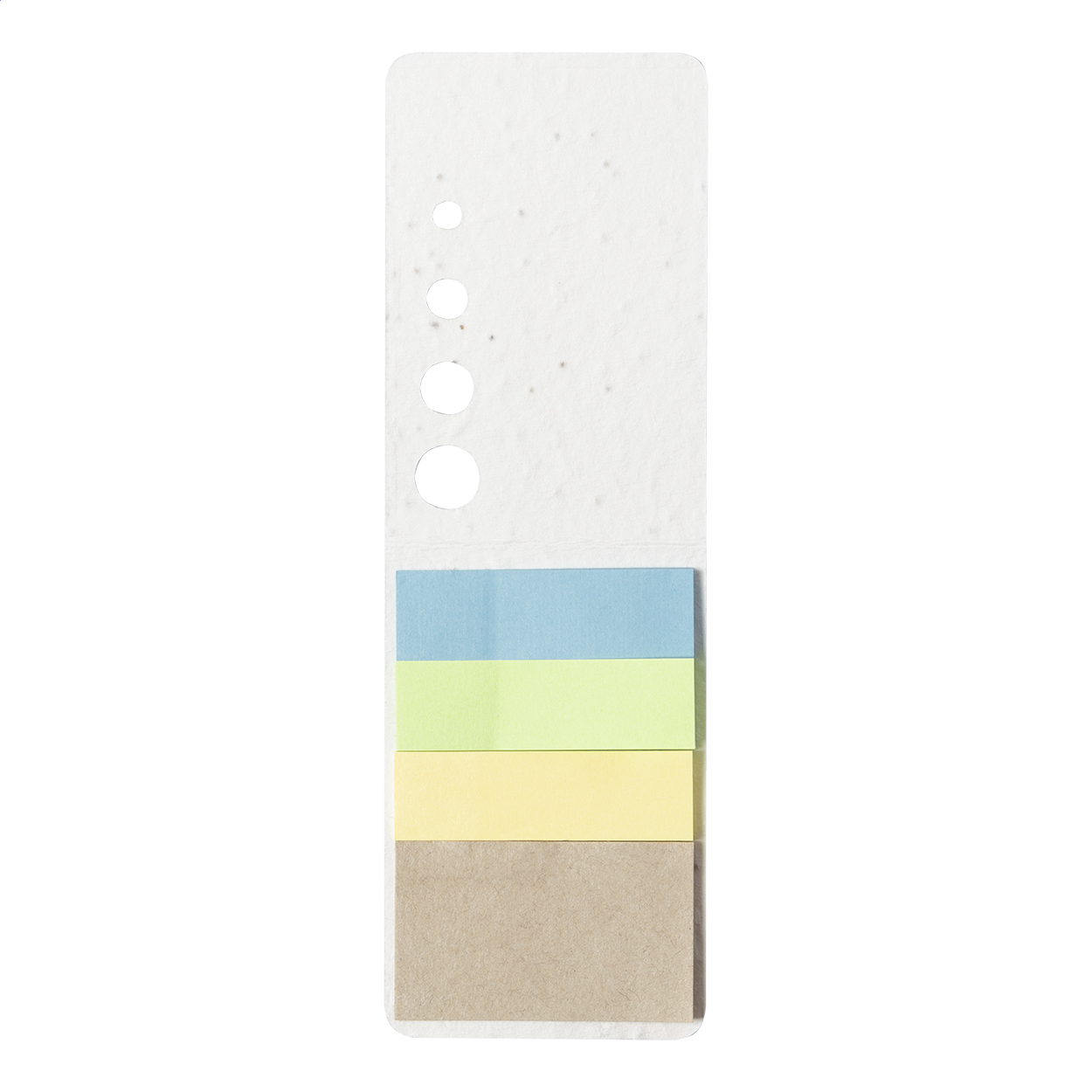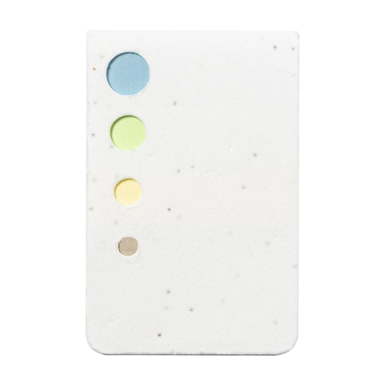 Set 10 foglietti adesivi e 30 segnapagina (3 colori assortiti) in carta riciclata con copertina in carta di semi. La copertina contiene semi di petunia in colori assortiti, che possono essere piantati separando la copertina dal blocco.