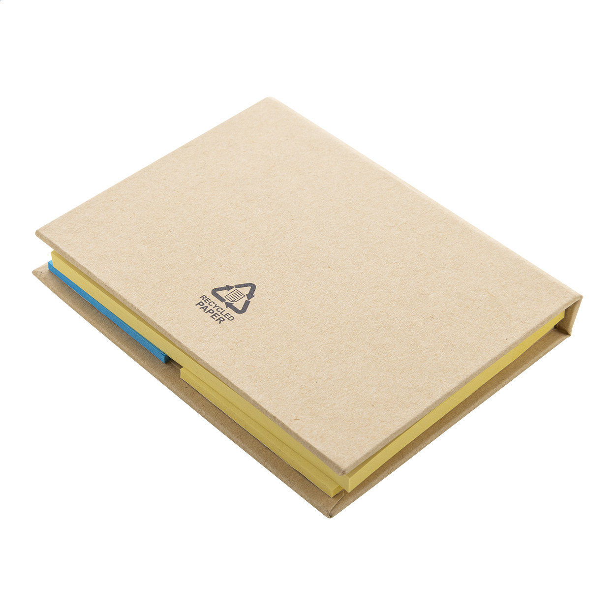 Blocco da 50 foglietti adesivi grandi, 25 medi, tutti in carta riciclata e 125 segnapagina (in 5 colori).