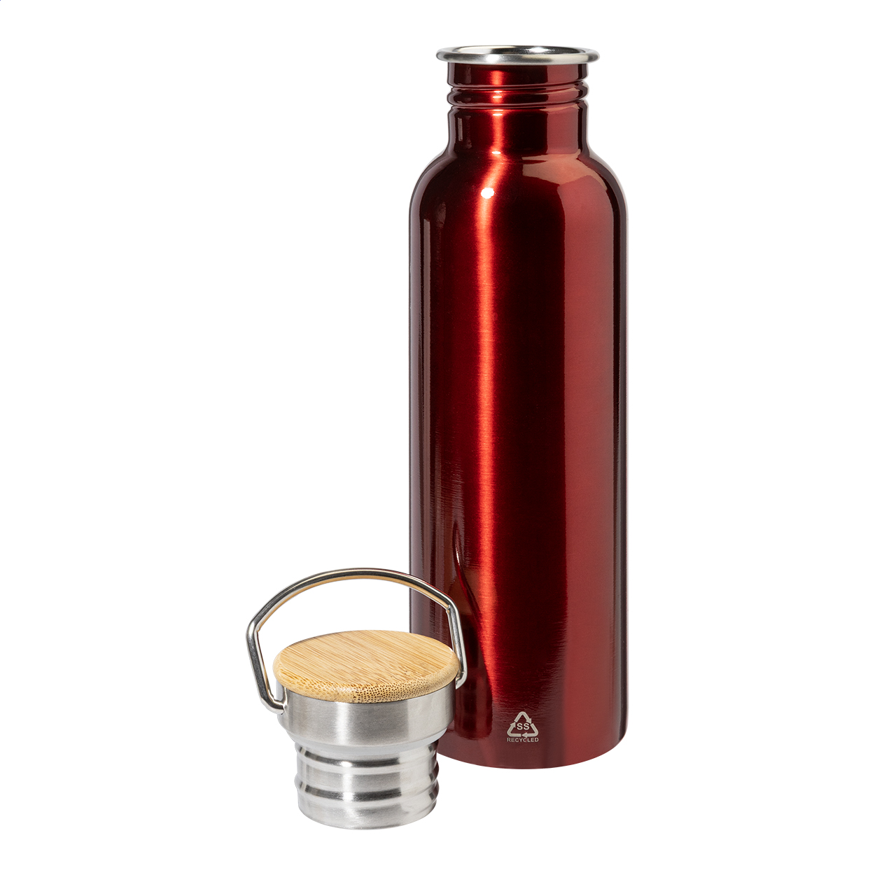 Borraccia in acciaio riciclato da 750ml con tappo in bambù.