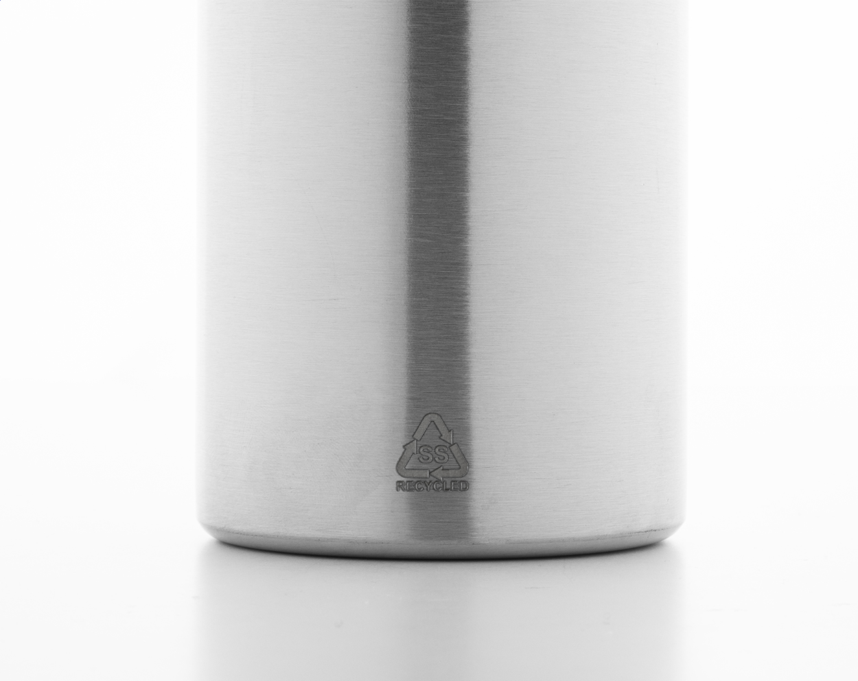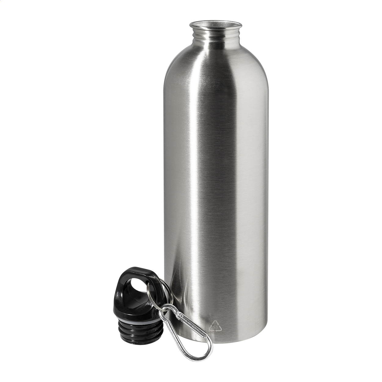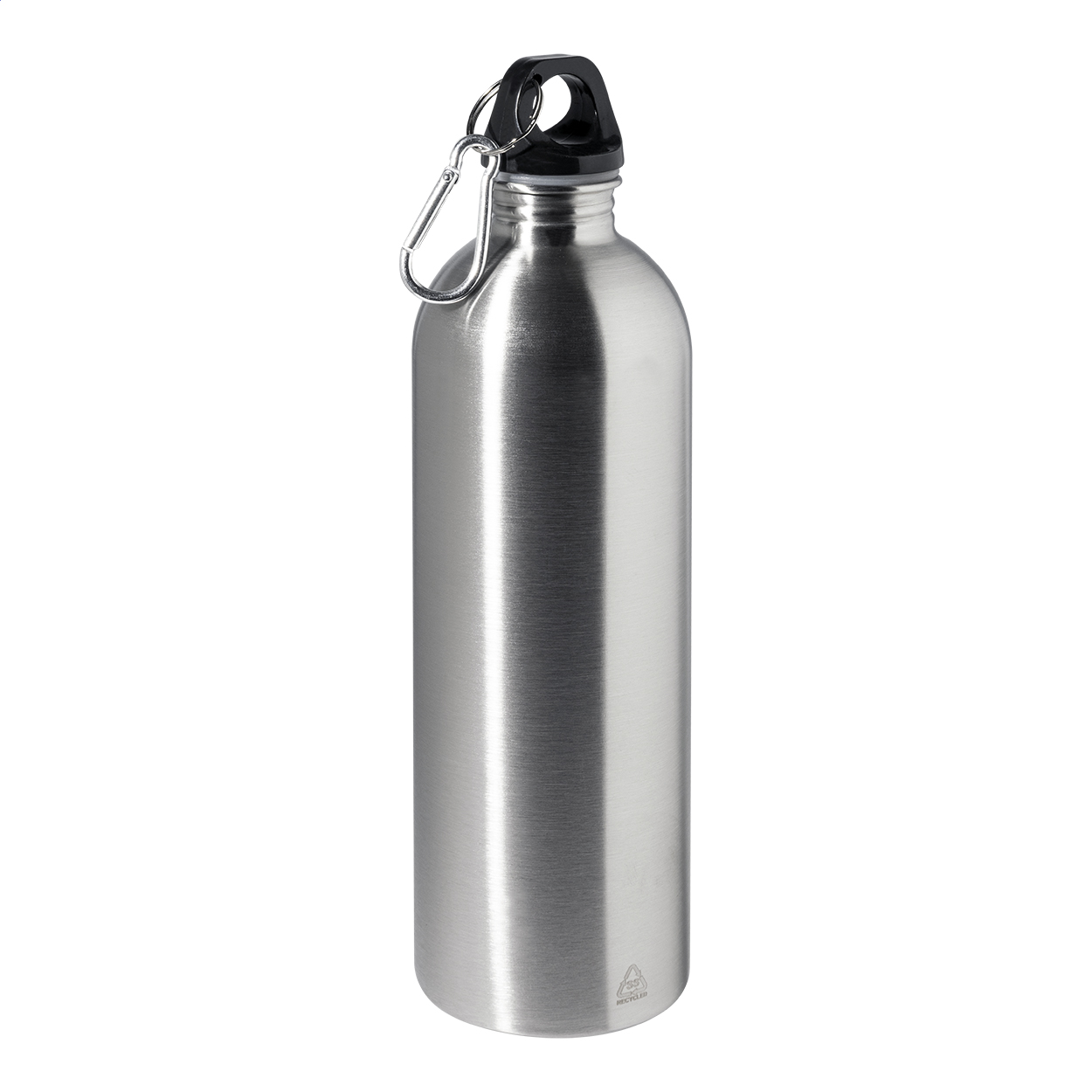 Borraccia in acciaio riciclato con capacità di 750ml e moschettone in alluminio.