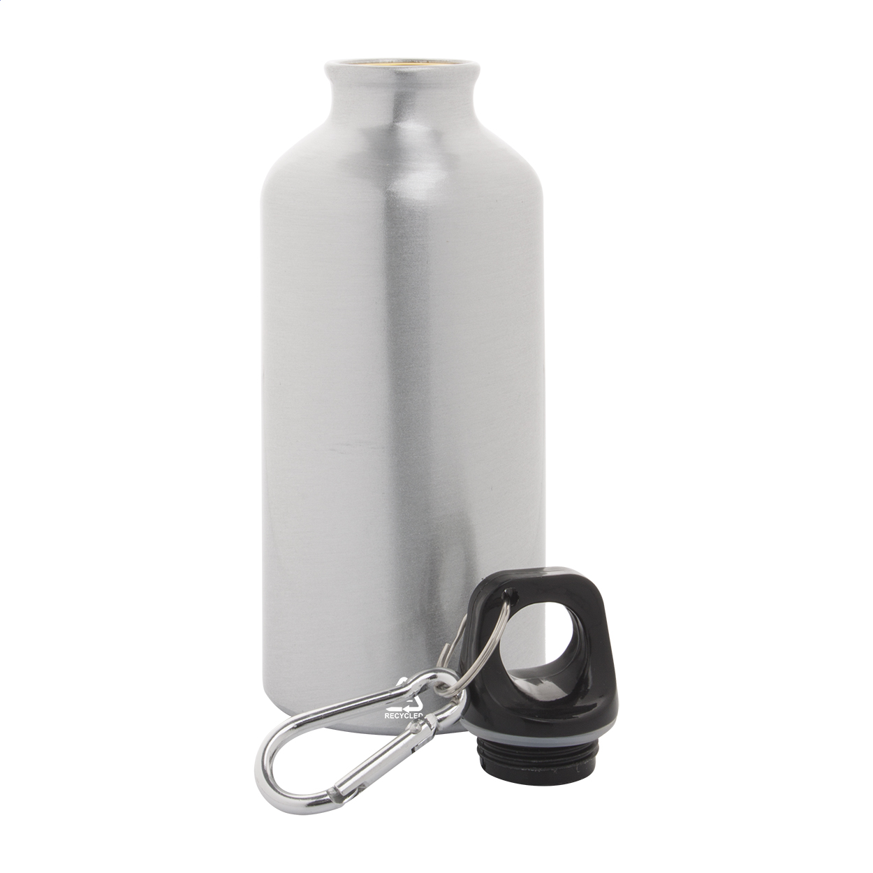 Borraccia da 400 ml in alluminio e moschettone in alluminio riciclato.
