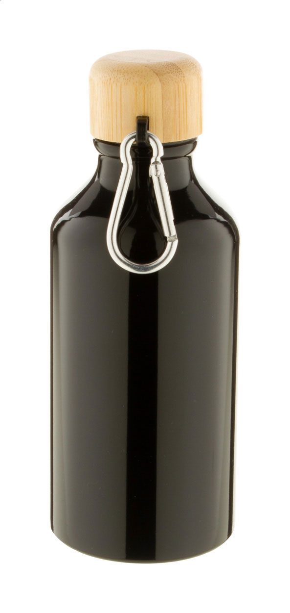 Borraccia da 400ml. in alluminio con tappo in bambù e moschettone.