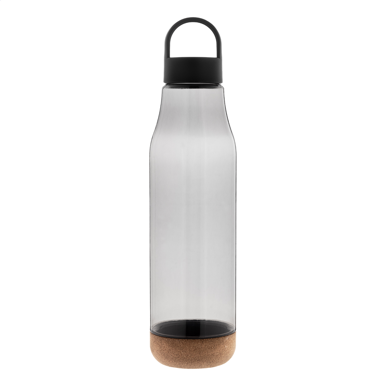 Borraccia da 720 ml. in RPET con base in sughero naturale e coperchio in plastica PP. Non adatta per l'utilizzo con bevande gassate.