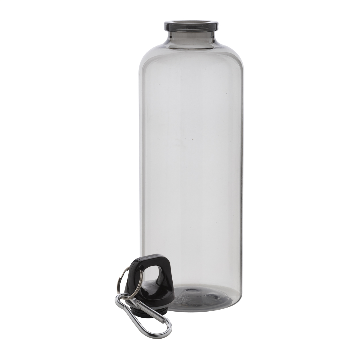 Borraccia in RPET con capacità di 600 ml. e moschettone in alluminio. Non contiene BPA e non è indicata per l'utilizzo di bevande gassate.