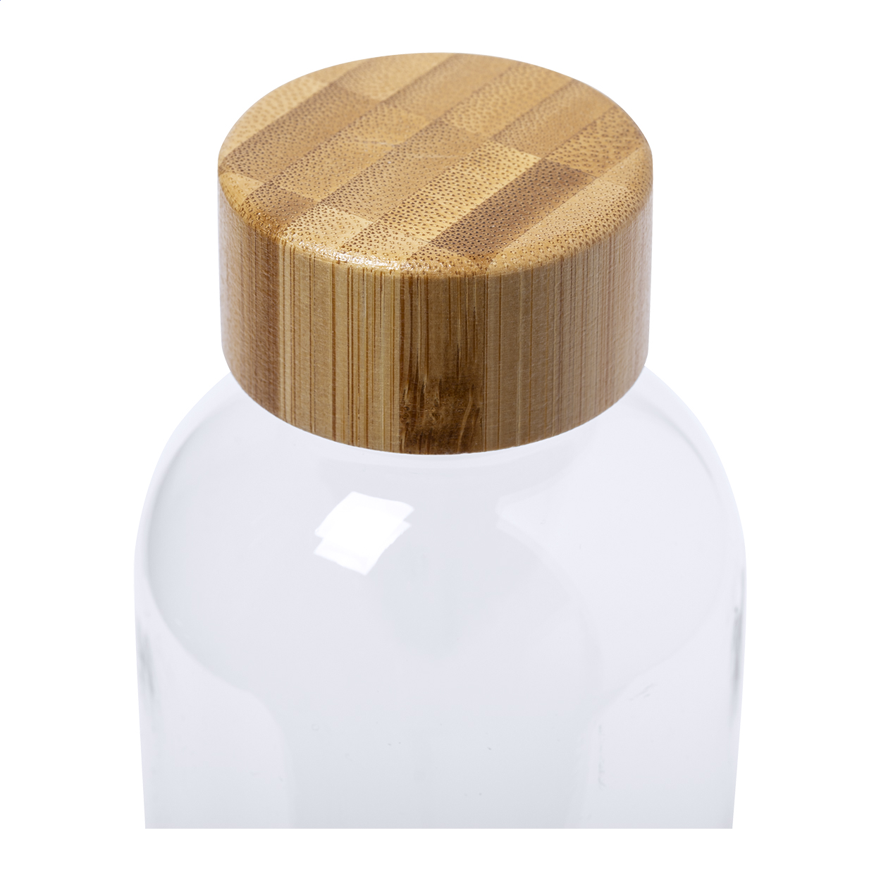 Borraccia da 600ml. in RPET non contenente BPA con tappo in bambù. Non adatta per l'utilizzo con bevande gassate.