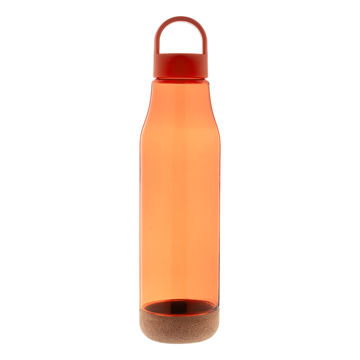 Borraccia da 720 ml. in RPET con base in sughero naturale e coperchio in plastica PP. Non adatta per l'utilizzo con bevande gassate.