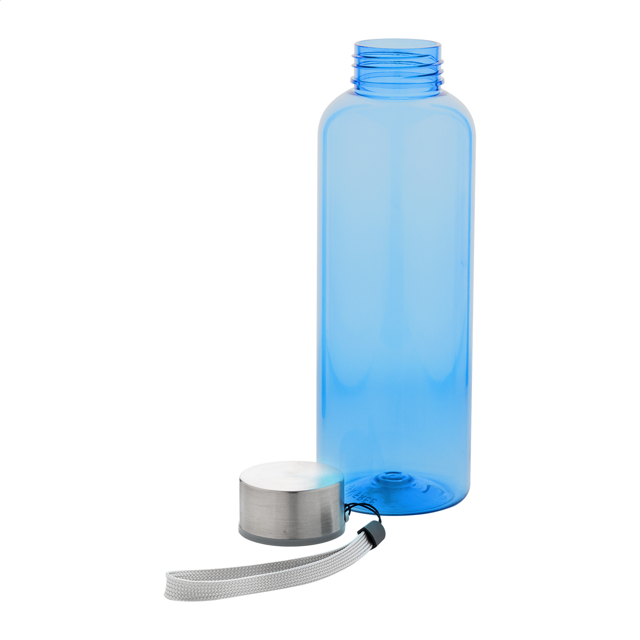 Borraccia da 500ml. in RPET non contenente BPA, con tappo in acciaio e tracolla. Non adatta per l'utilizzo con bevande gassate.