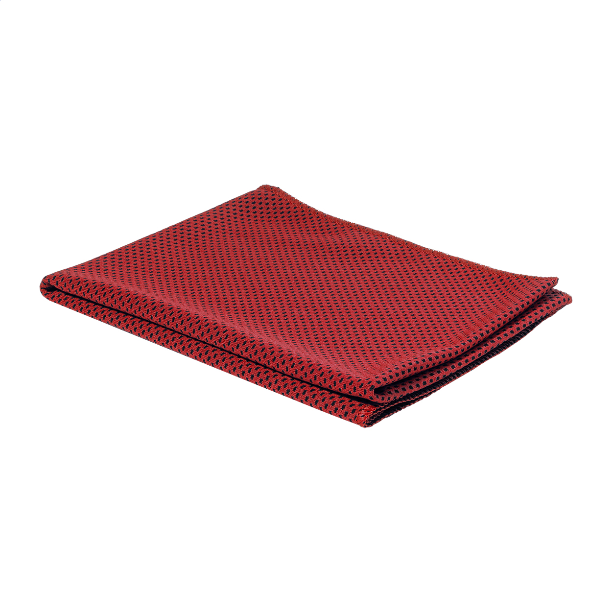 Asciugamano sportivo 30x80cm in poliestere RPET con borraccia in RPET da 800ml., senza BPA, tappo flip-top in PP, cannuccia integrata e tracolla. La borraccia non è idonea a contenere bevande gassate.