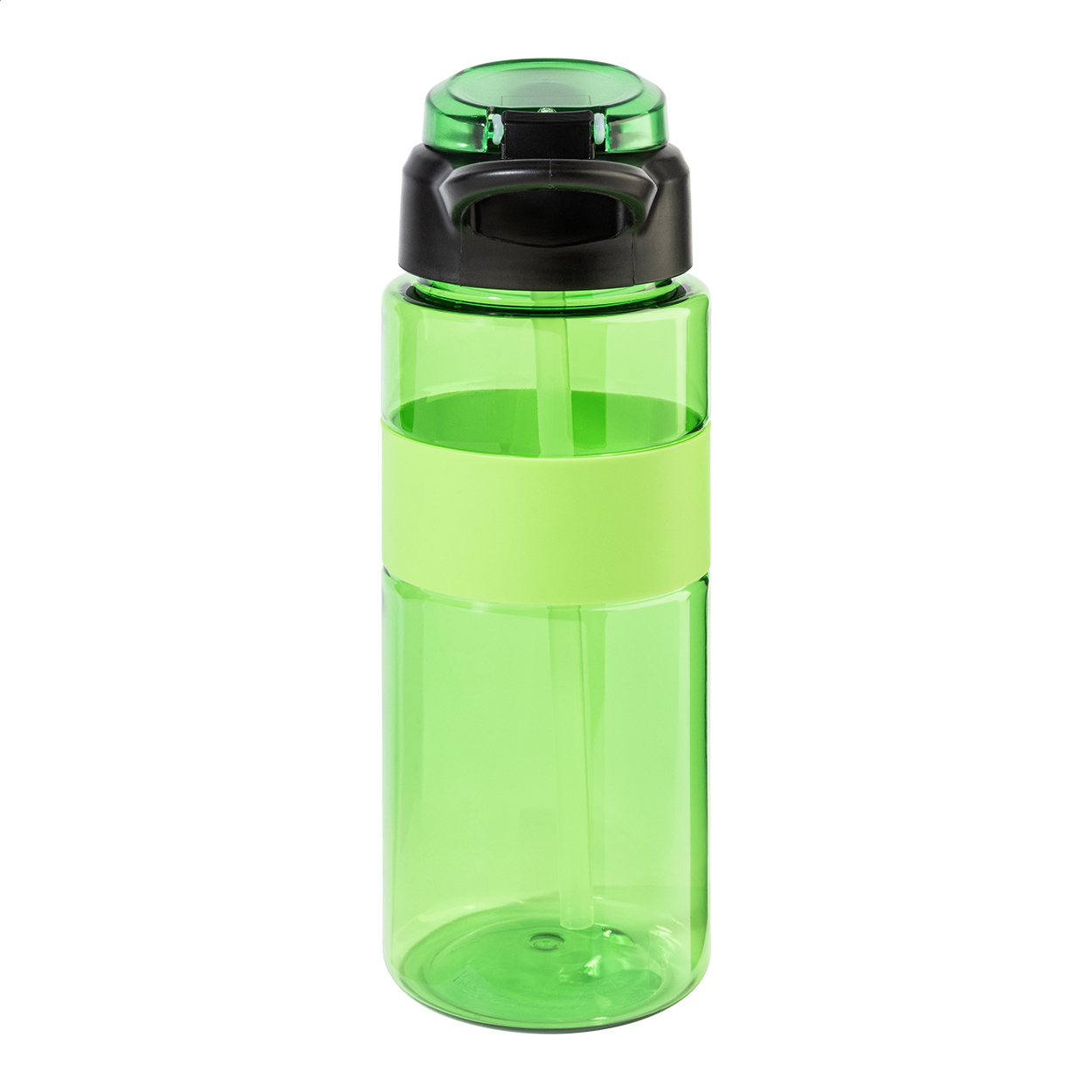 Borraccia in RPET da 700ml, senza BPA, con impugnatura in silicone, tappo flip-top ad apertura automatica con cannuccia integrata, beccuccio in silicone e chiusura di sicurezza. Non adatta alle bevande gassate.