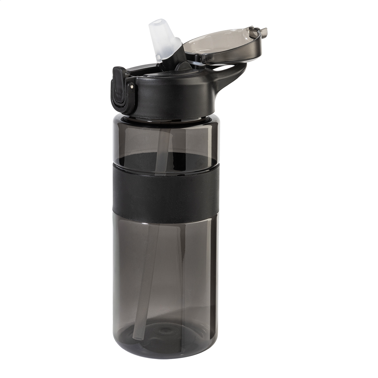 Borraccia in RPET da 700ml, senza BPA, con impugnatura in silicone, tappo flip-top ad apertura automatica con cannuccia integrata, beccuccio in silicone e chiusura di sicurezza. Non adatta alle bevande gassate.