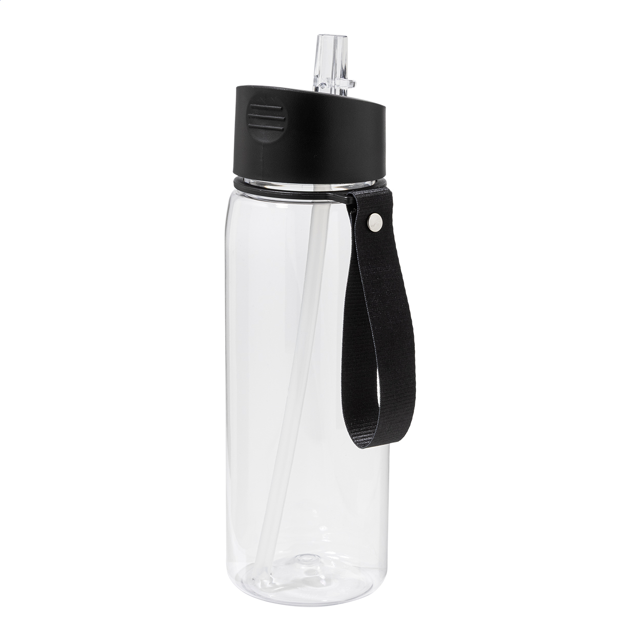 Asciugamano sportivo 30x80cm in poliestere RPET con borraccia in RPET da 800ml., senza BPA, tappo flip-top in PP, cannuccia integrata e tracolla. La borraccia non è idonea a contenere bevande gassate.