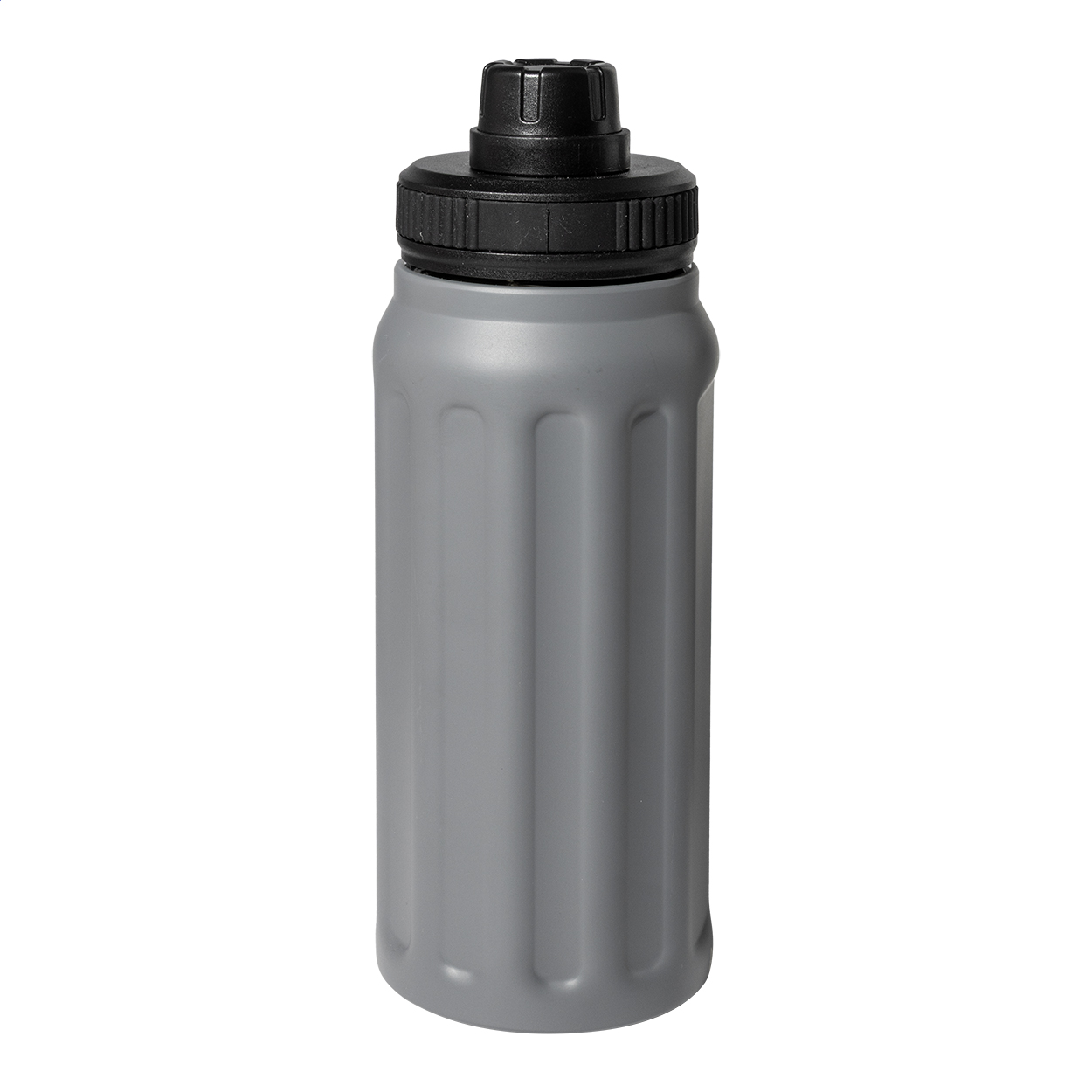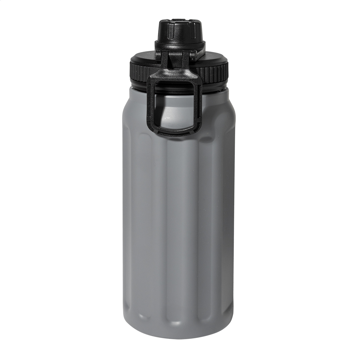 Borraccia termica in acciaio riciclato a doppia parete da 540ml., con rigature verticali e tappo in PP con manico integrato.