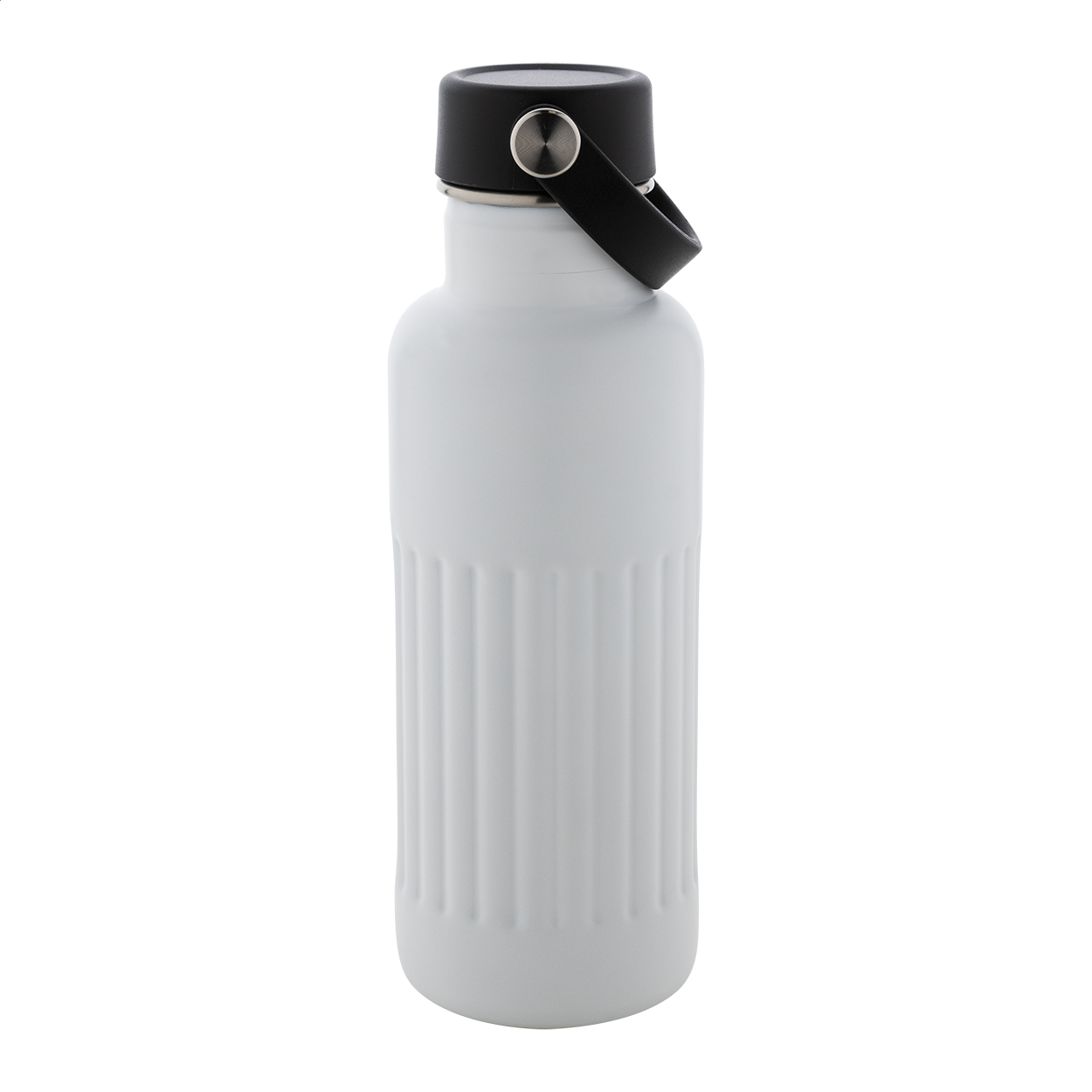 Borraccia isotermica a doppia parete in acciaio riciclato con tappo in plastica PP e capacità di 500 ml.