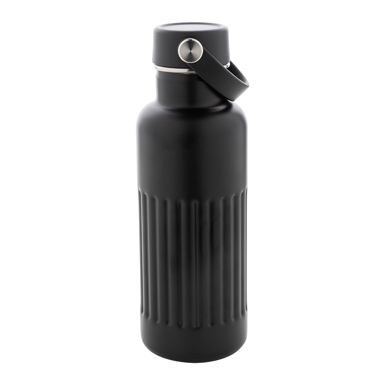 Borraccia isotermica a doppia parete in acciaio riciclato con tappo in plastica PP e capacità di 500 ml.