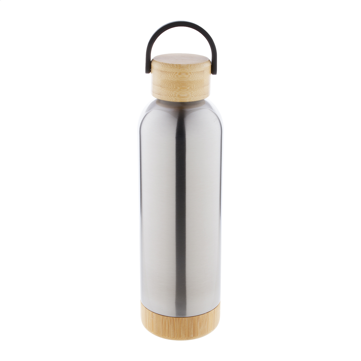 Borraccia termica da 500ml. in acciaio a doppia parete con tappo e base in bambù.