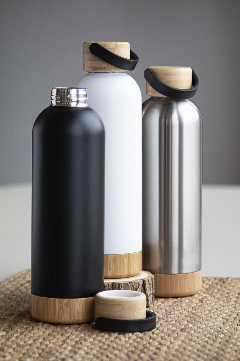Borraccia termica da 500ml. in acciaio a doppia parete con tappo e base in bambù.