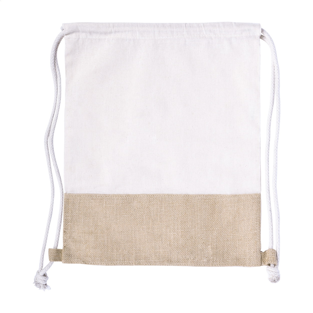 Sacca con chiusura a coulisse in cotone (120 g/m²) e juta.