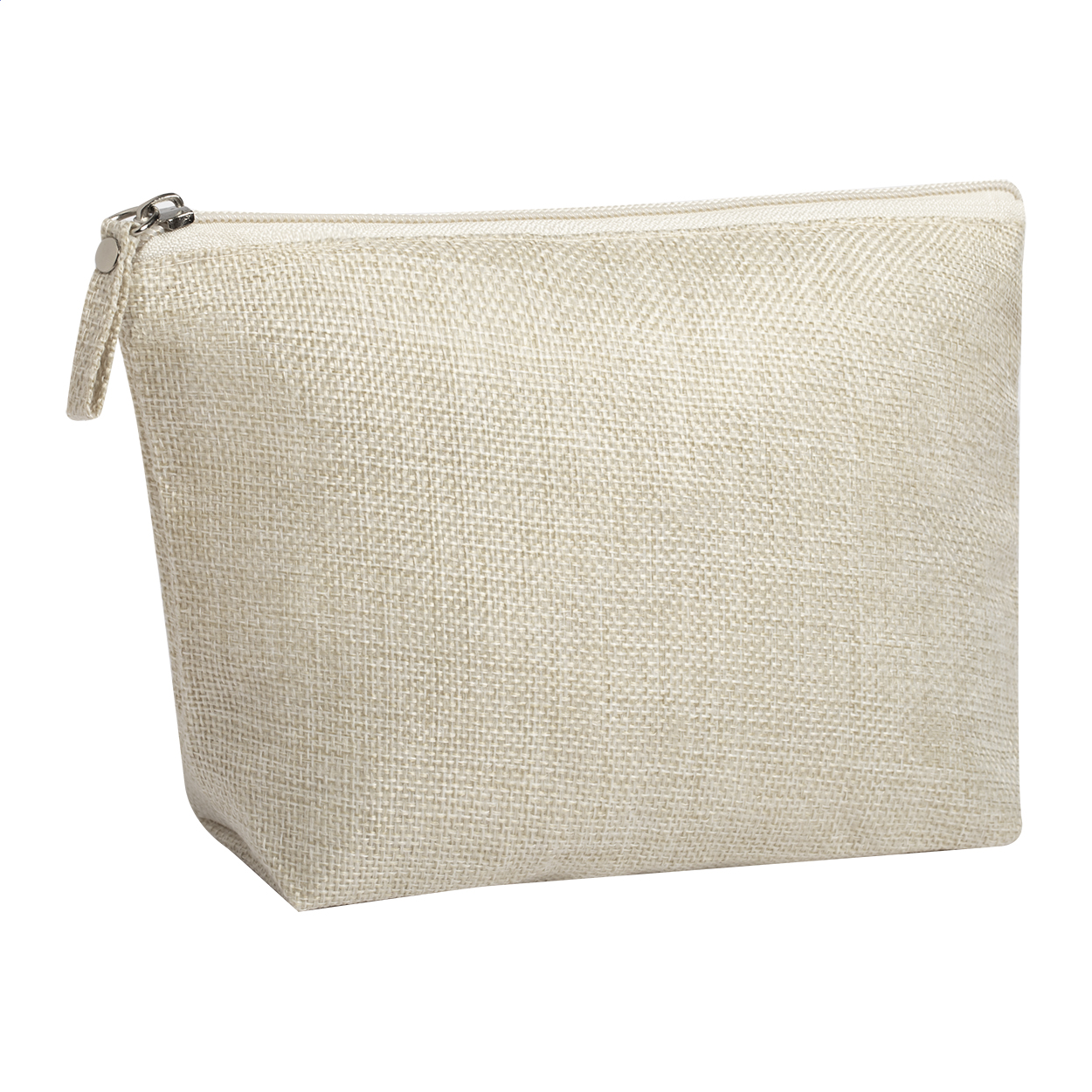 Trousse per cosmetici in poliestere di colore naturale con cerniera.