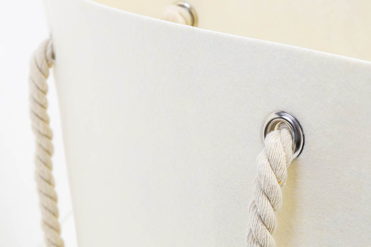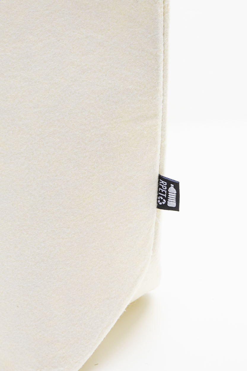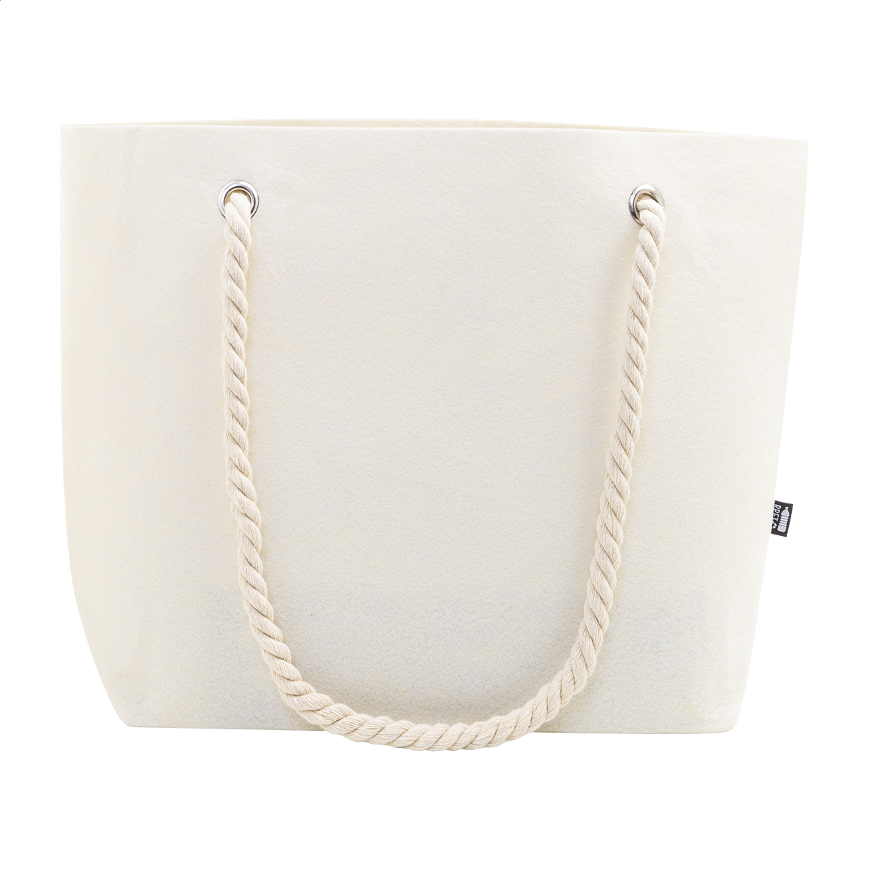 Borsa da spiaggia o per la spesa in feltro RPET con manici in corda di cotone, soffietto sul fondoed etichetta RPET.